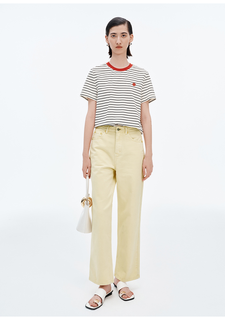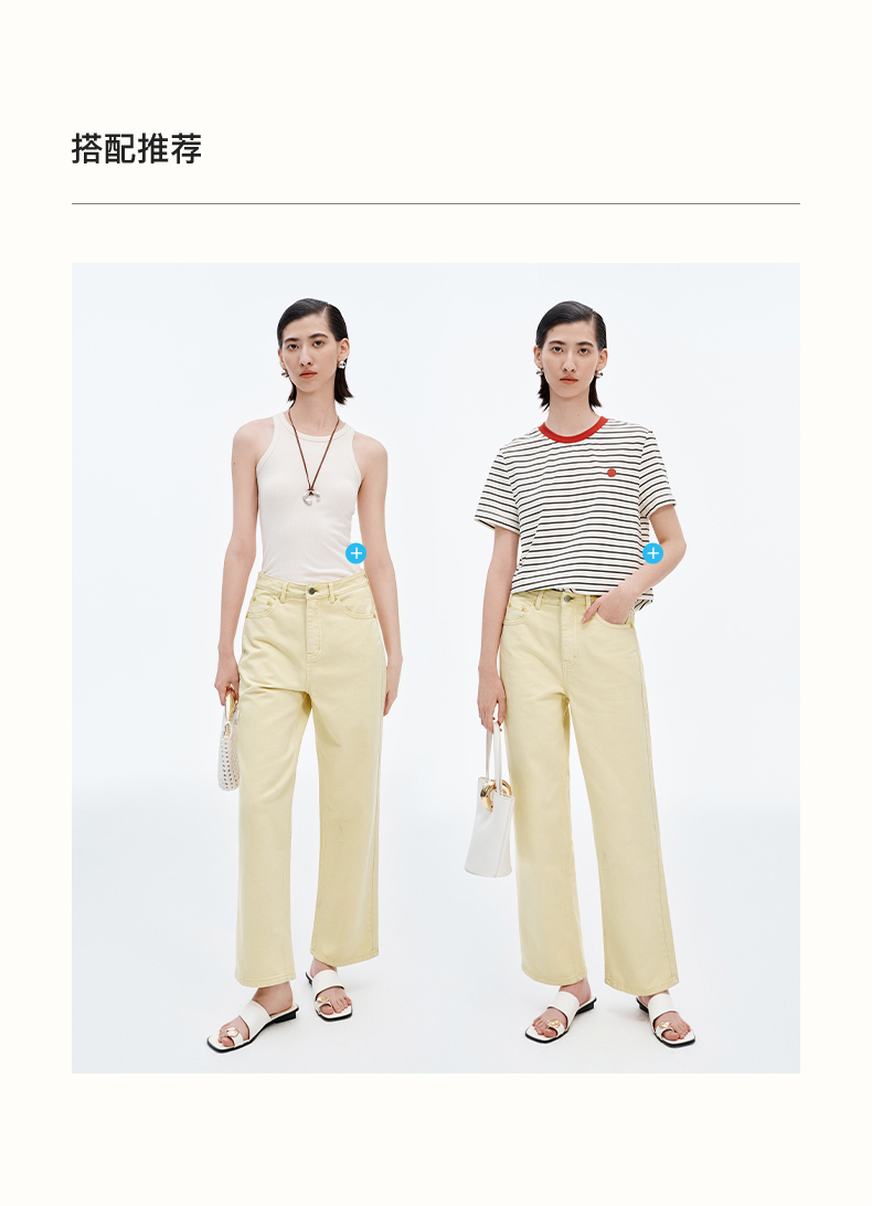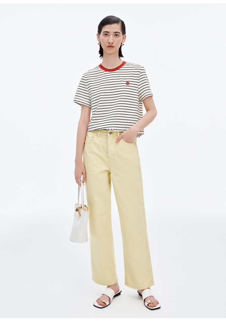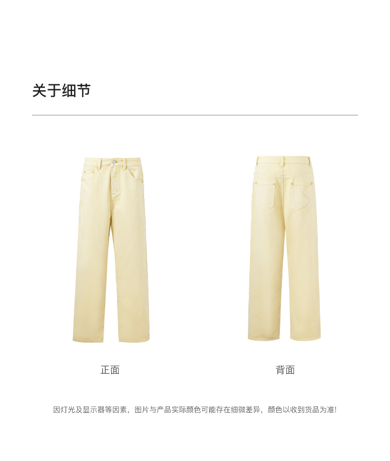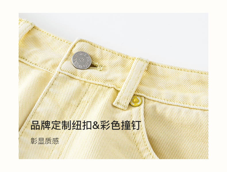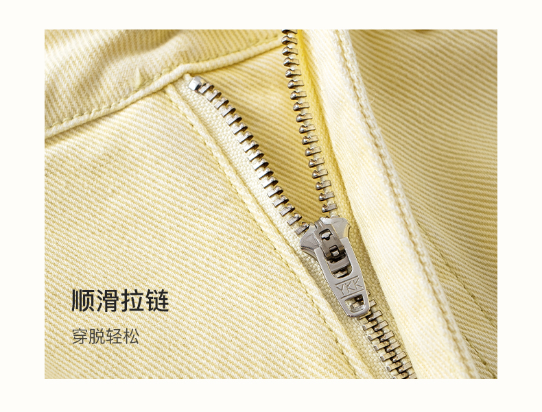 SELFWHO纯棉藤黄色水洗牛仔裤女2025夏新款时髦清新直筒九分裤