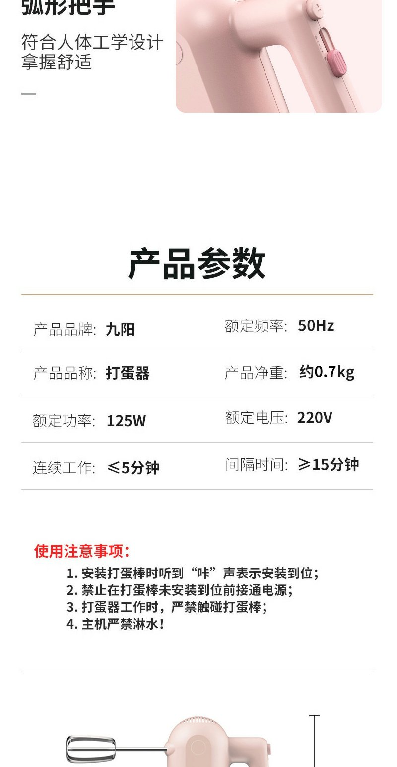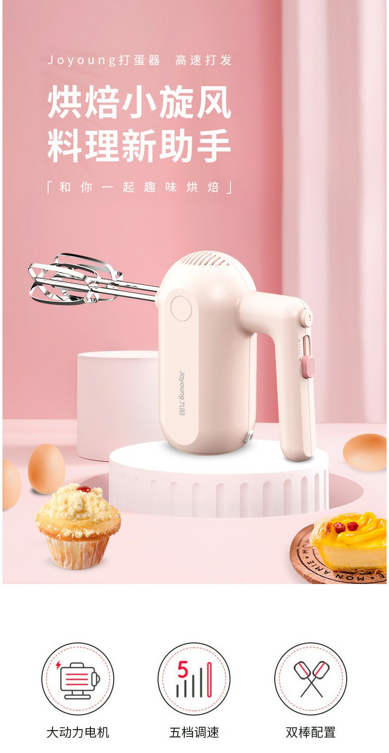九阳 打蛋器 家用电动迷你打蛋器 手持搅拌器 S-LD158 粉色