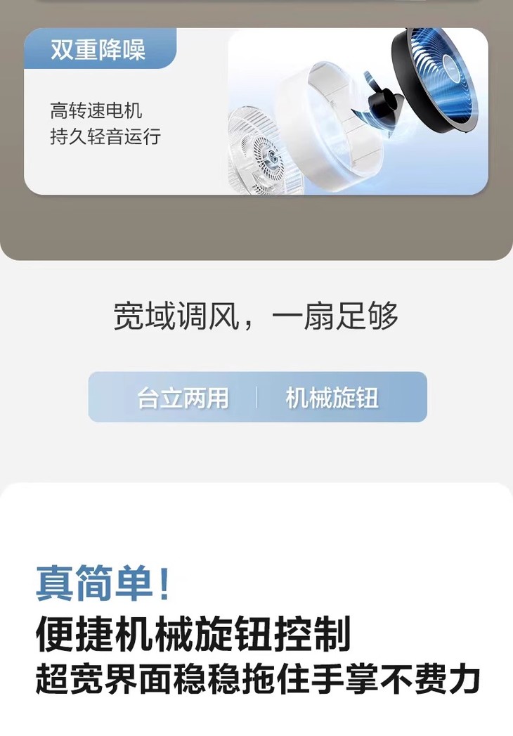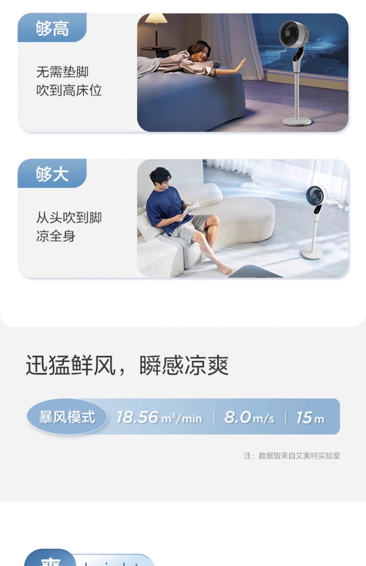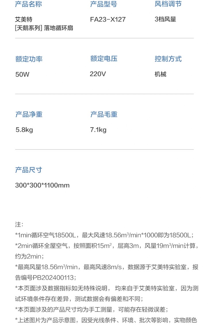 【直送到家】艾美特循环扇FA23-RDI123 家用落地扇 机械旋钮款