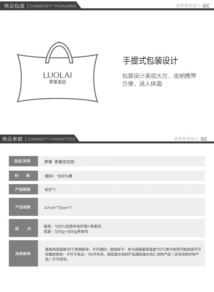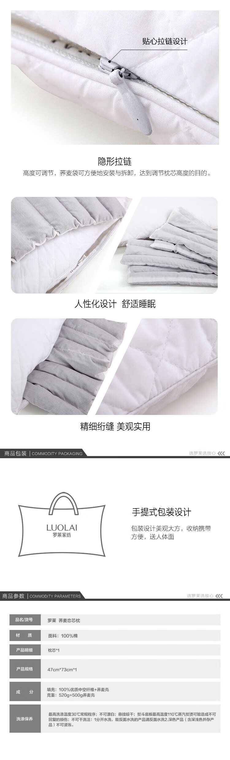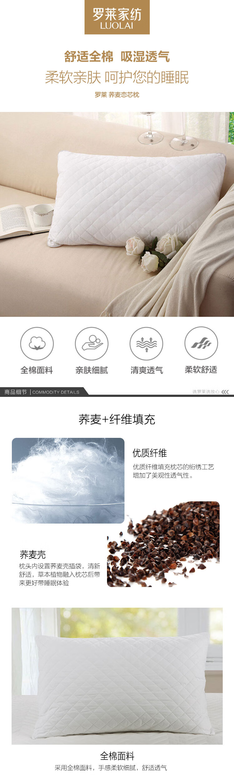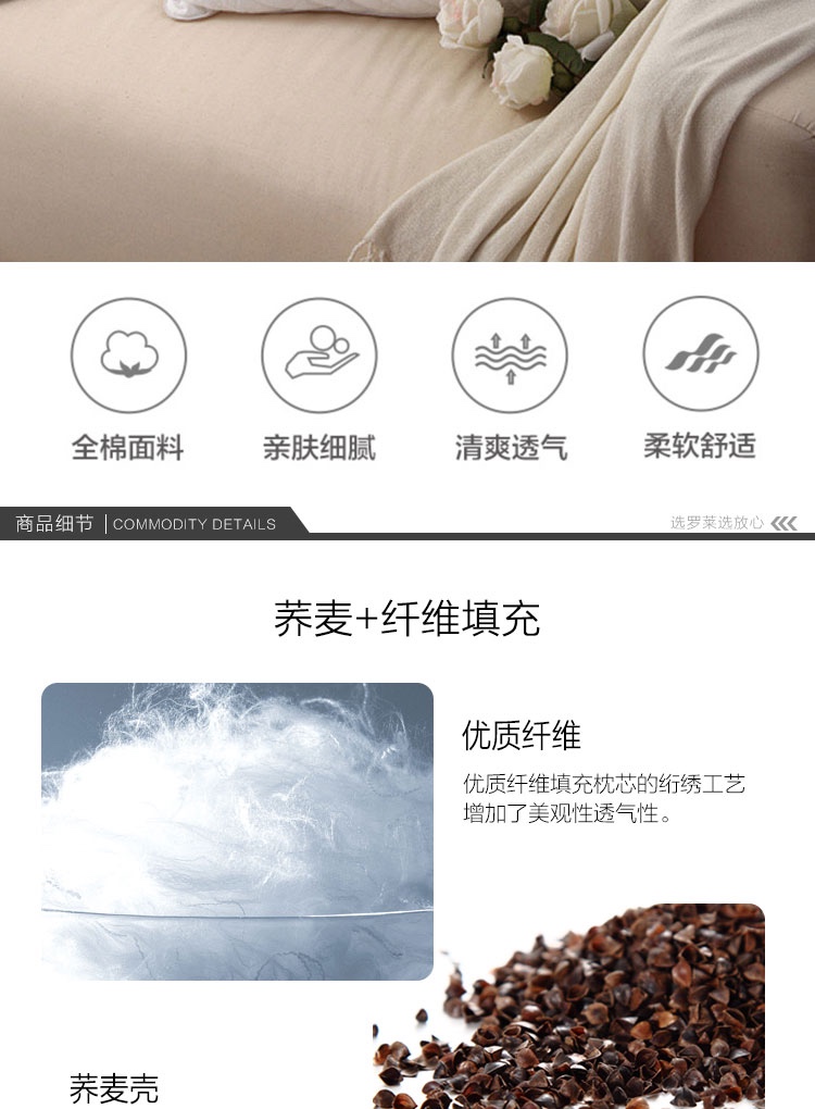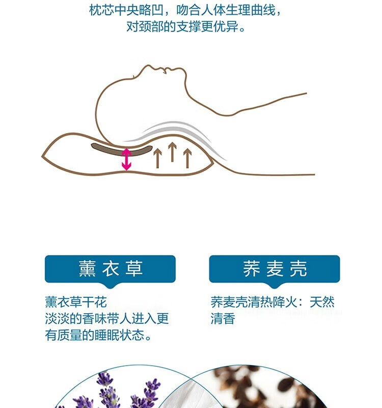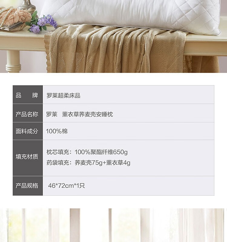 罗莱 薰衣草荞麦壳安睡枕单支装46*72cm