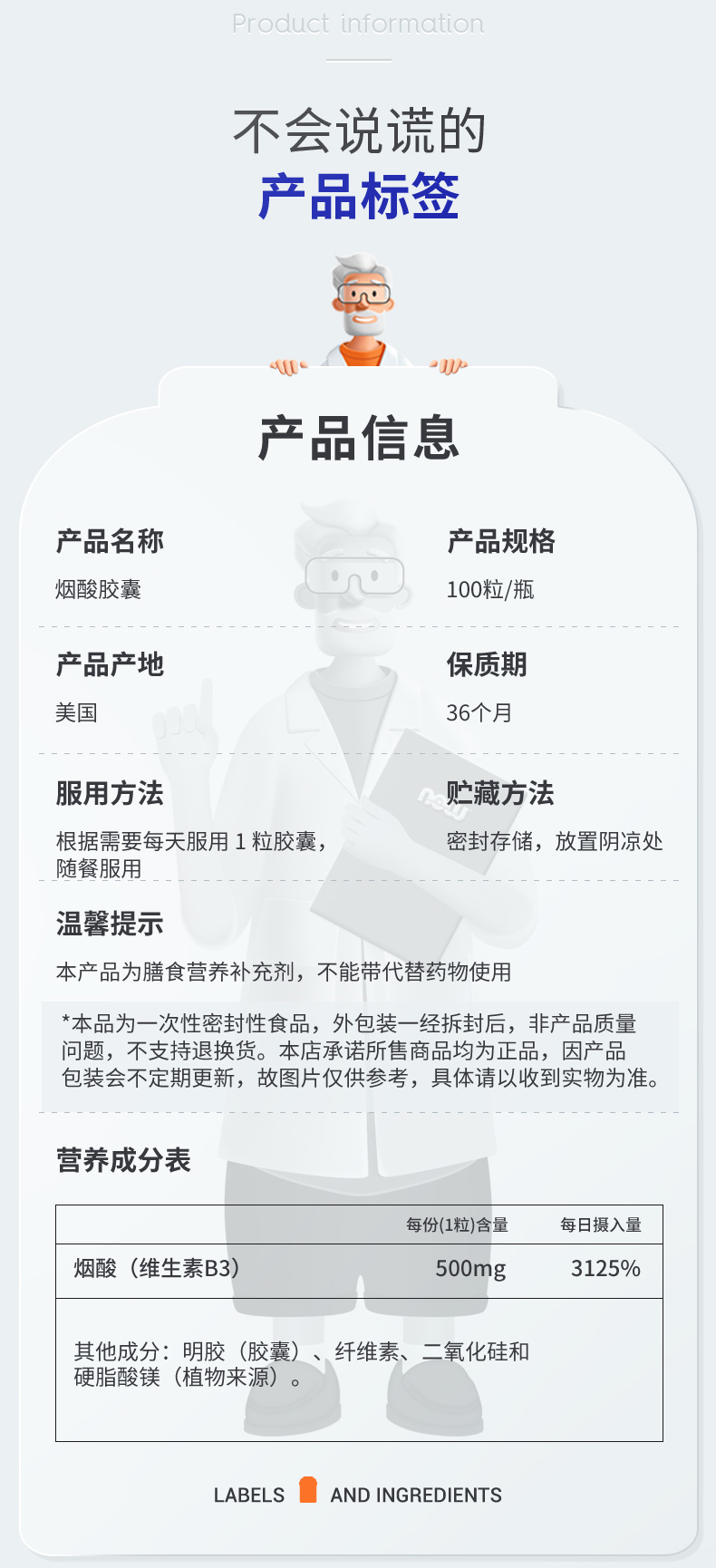 【NOW诺奥】烟酸胶囊100粒/瓶