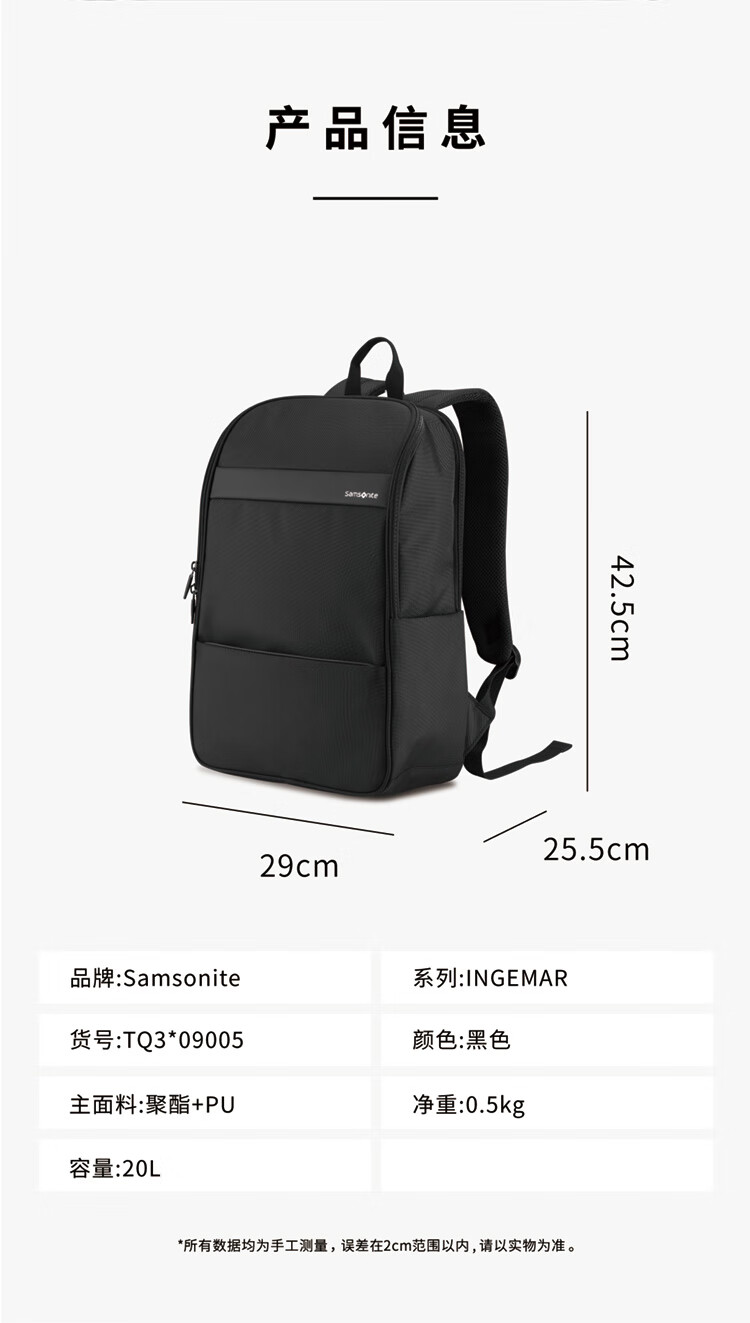 新秀丽 Samsonite 15.6英寸苹果笔记本双肩电脑包 TQ3*09005-黑色