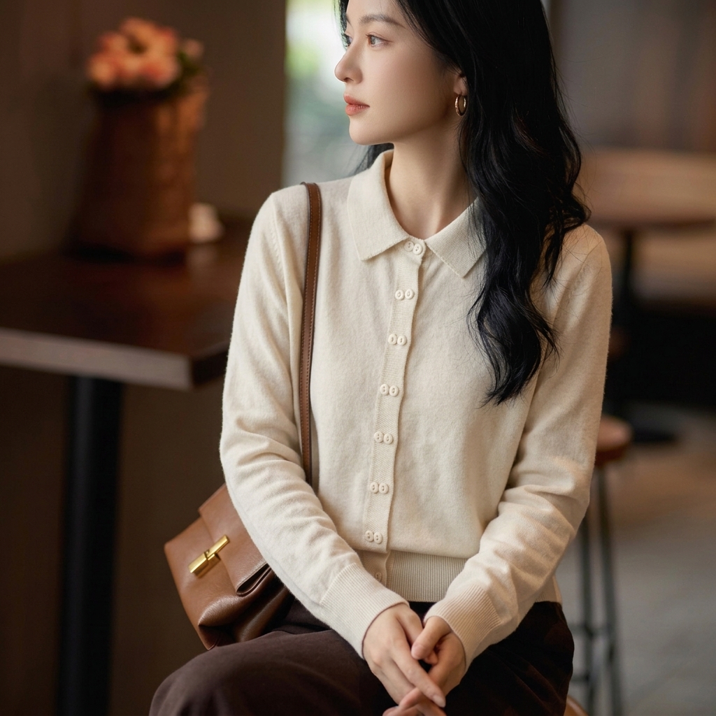 轻奢质感~时尚简约翻领针织衫百搭减龄毛衣外套SYM260606