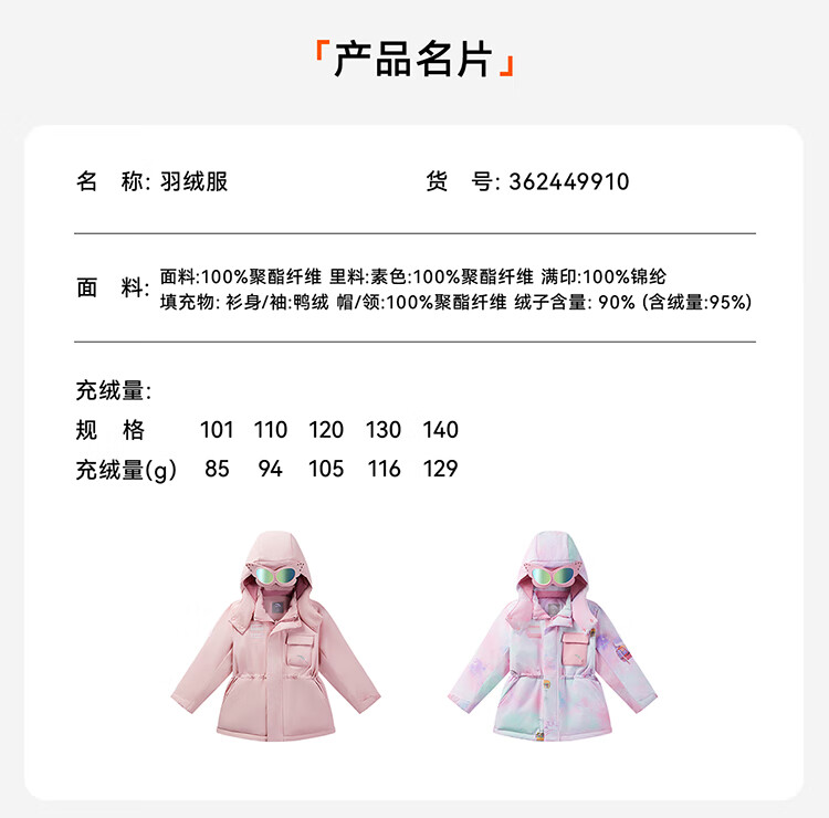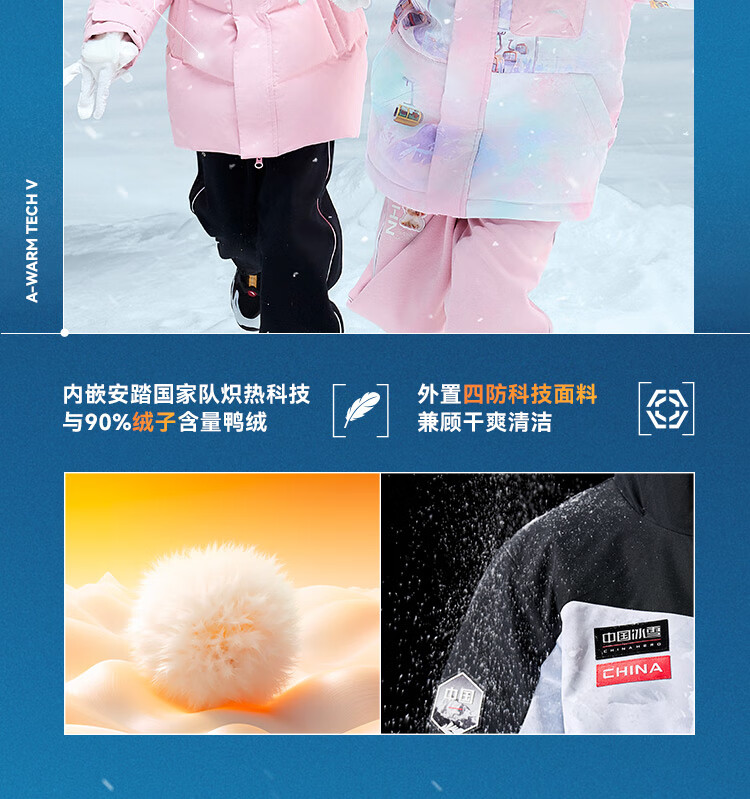 安踏儿童羽绒服女小童2024冬季加厚夹棉四防科技中长羽绒服362449910