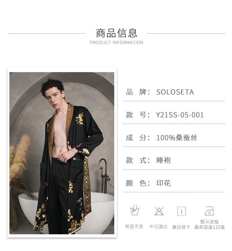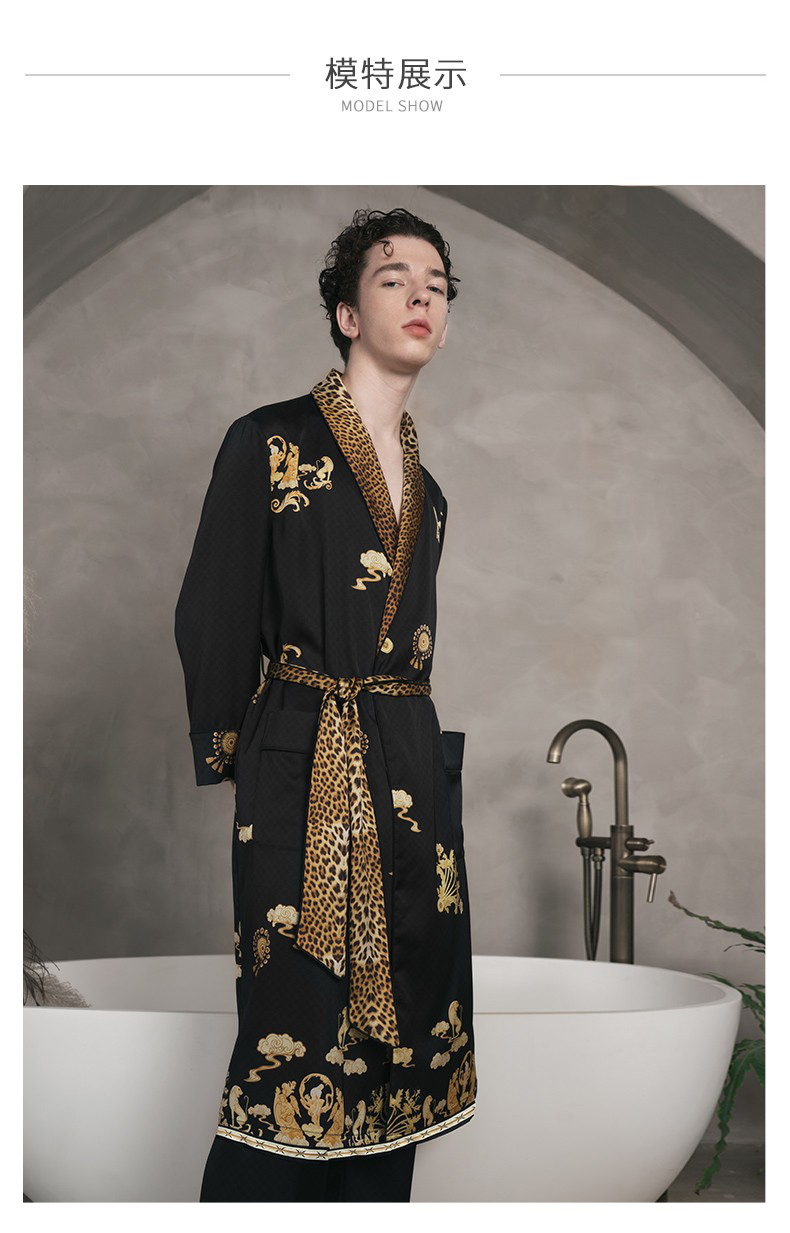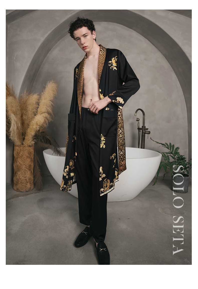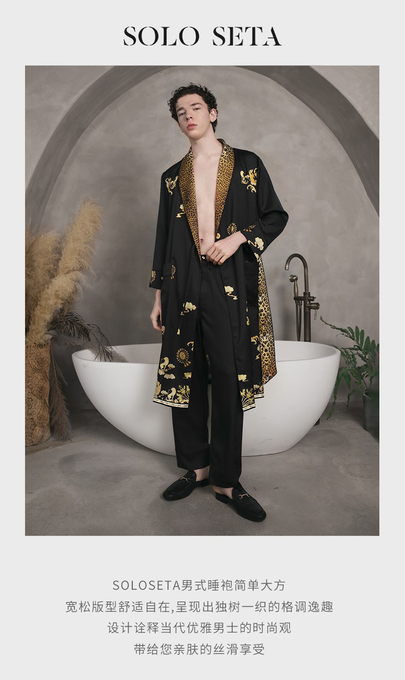 Solo seta22姆米重磅真丝睡袍男中长款桑蚕丝家居服丝绸时尚豹纹