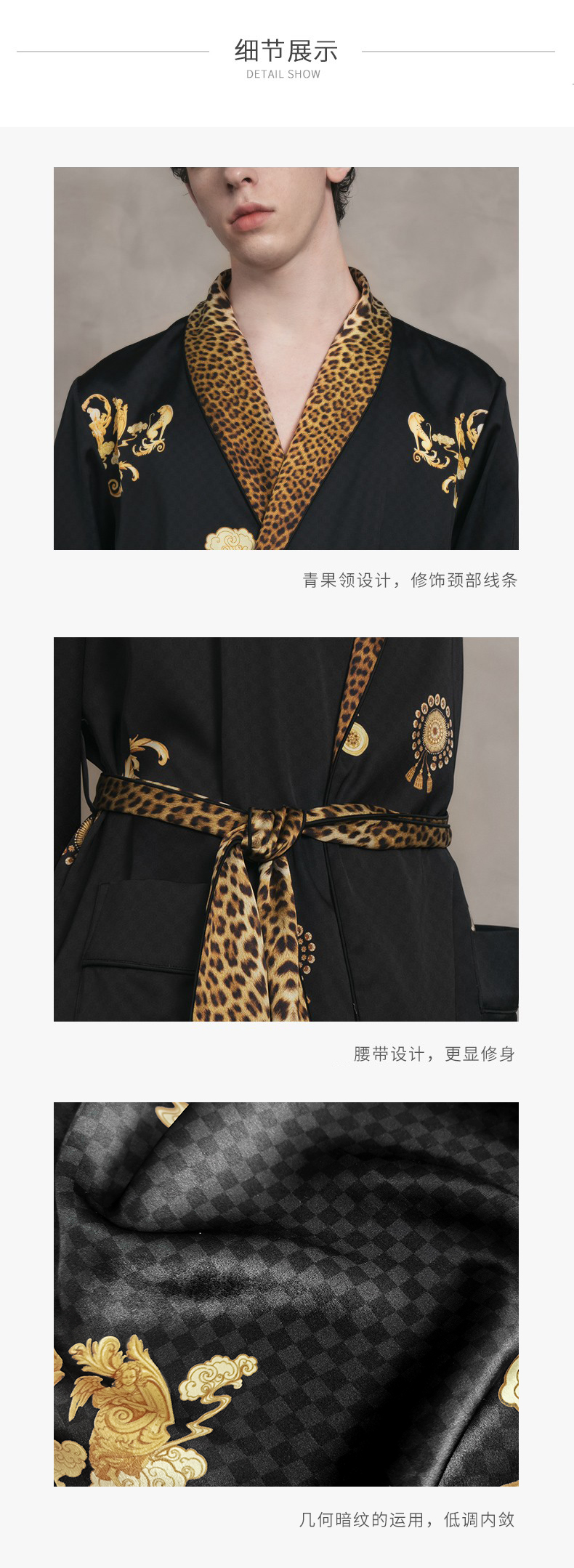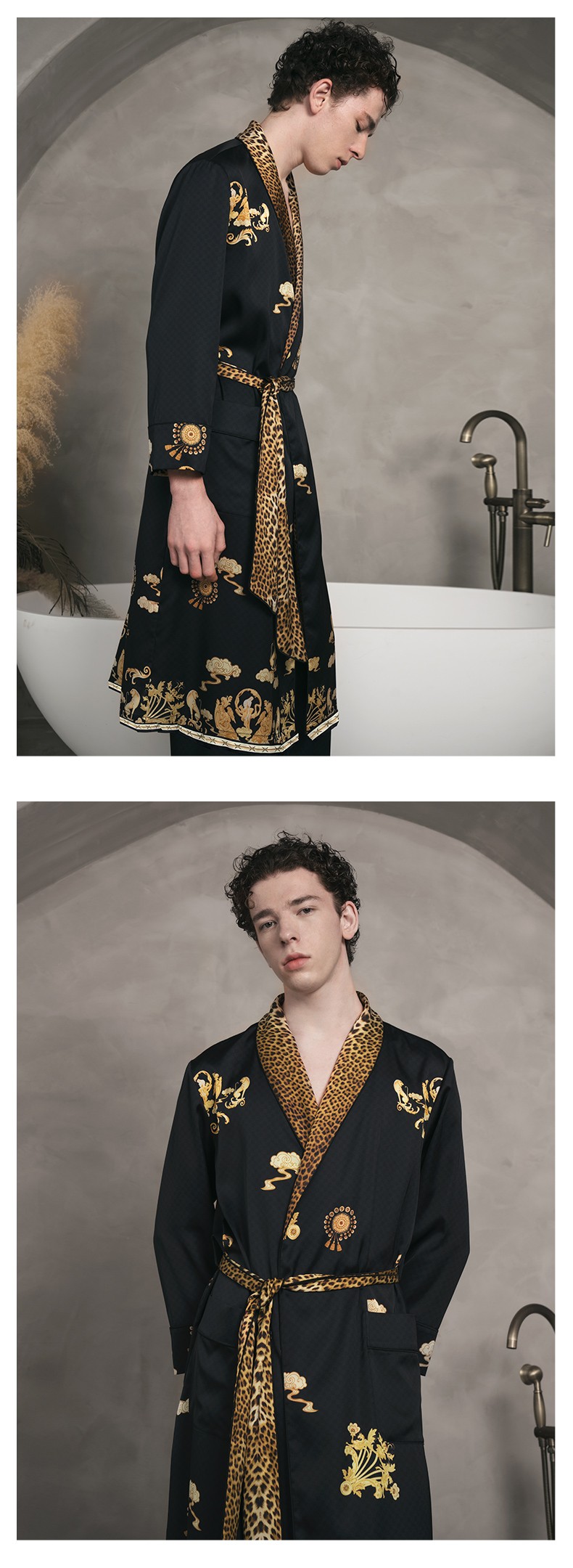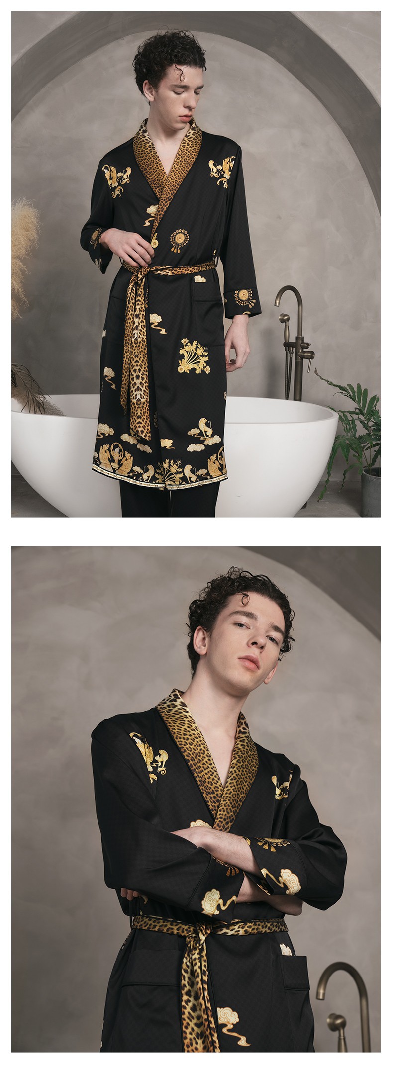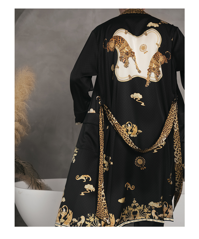 Solo seta22姆米重磅真丝睡袍男中长款桑蚕丝家居服丝绸时尚豹纹