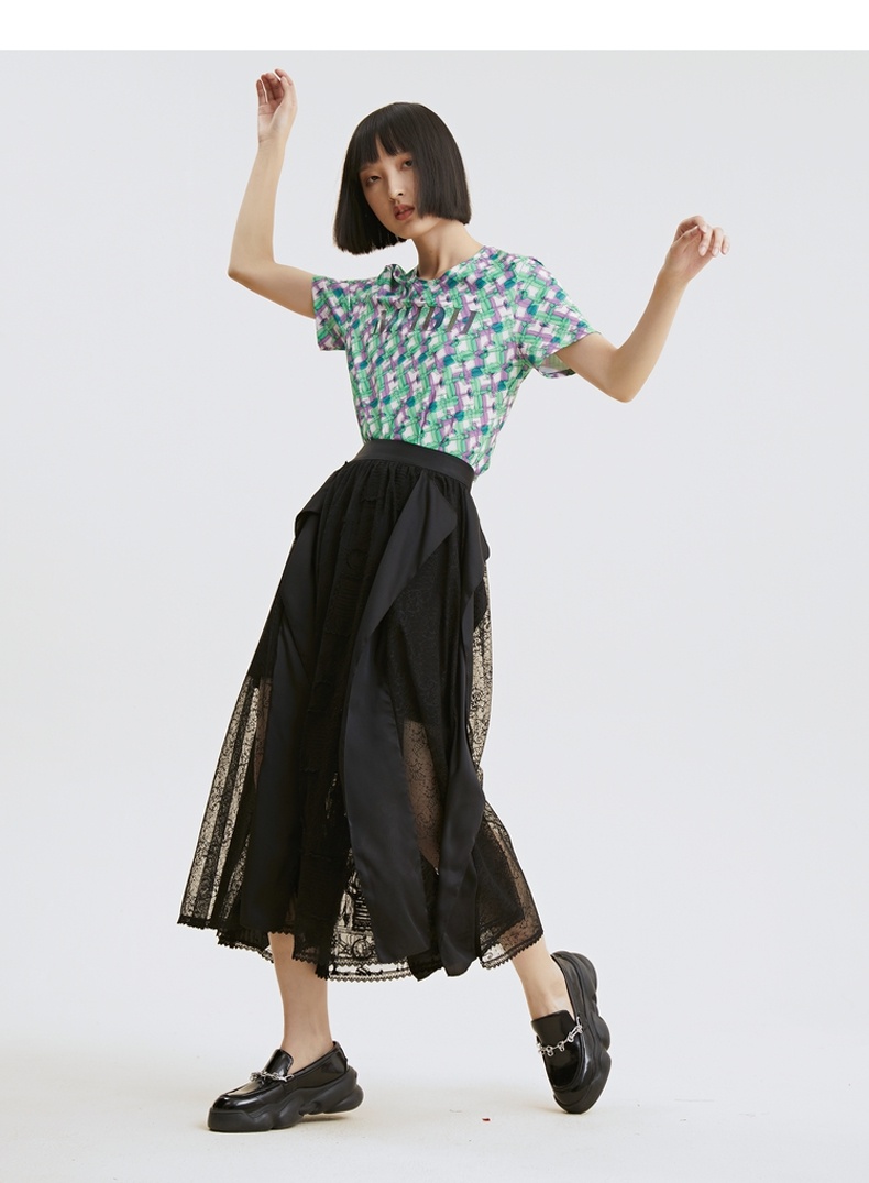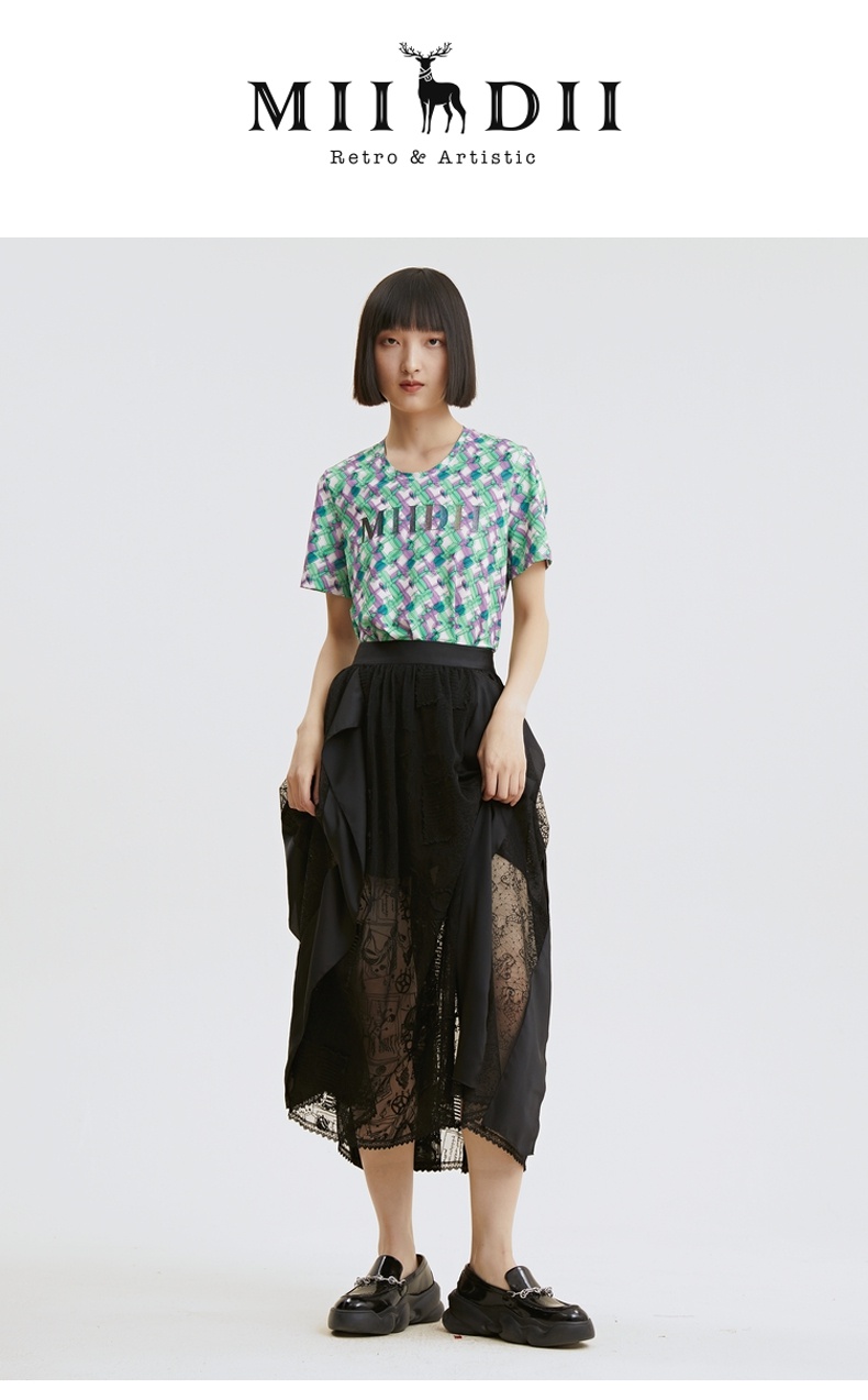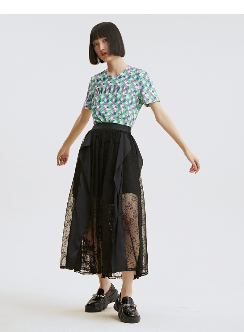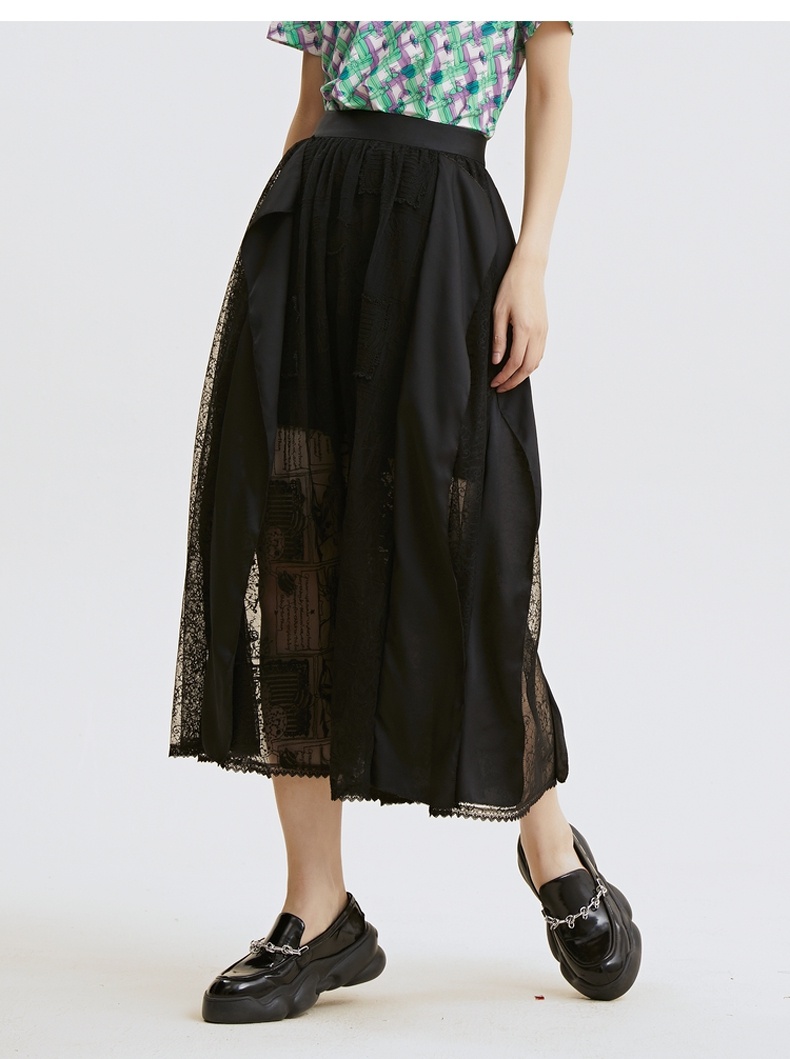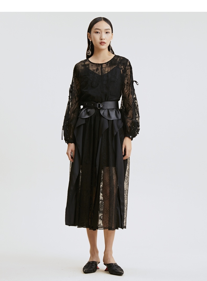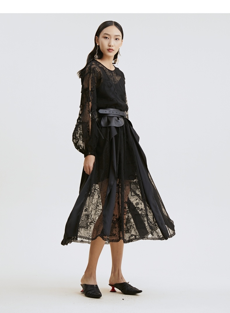 谜底半身裙2021夏季新款复古立体绣花长雪纺裙蕾丝礼裙213MB1842