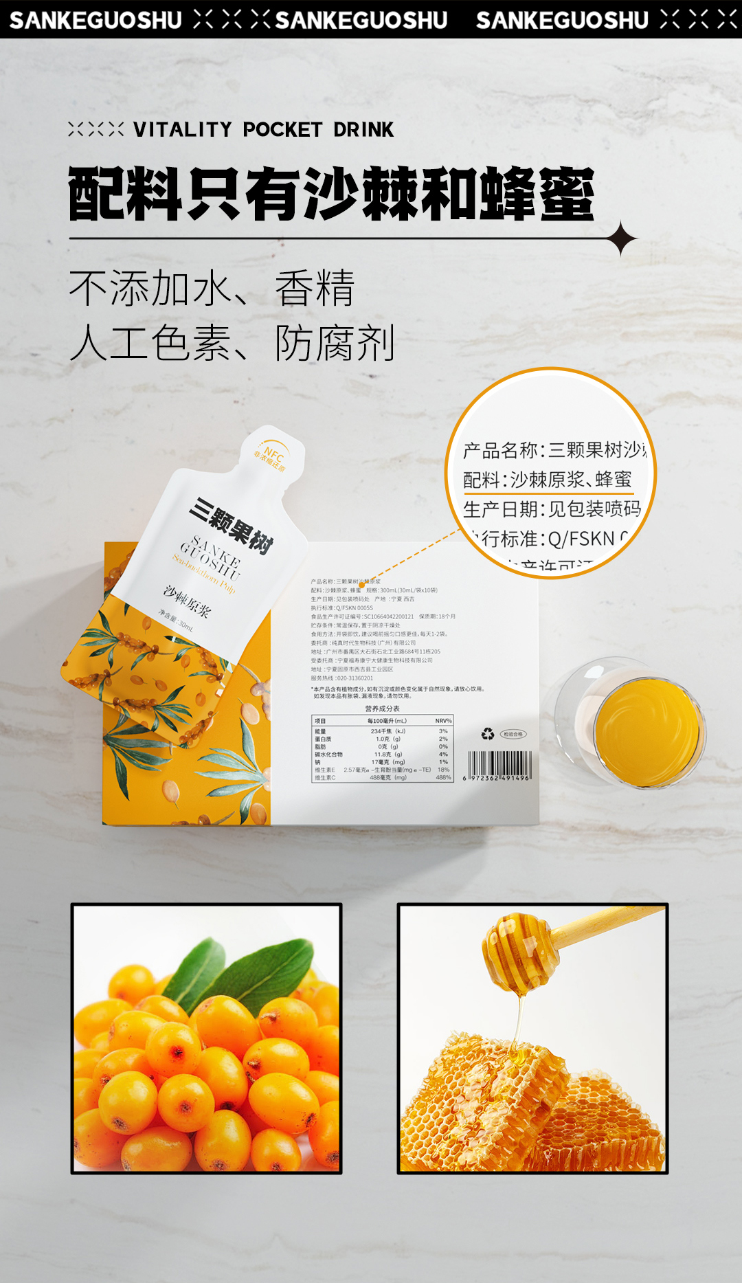 【新货上架】【预售中】沙棘原浆30ML*10袋*6盒