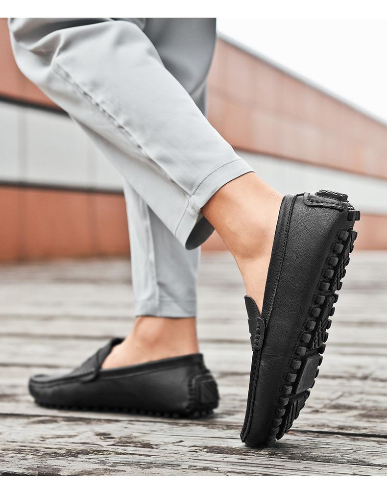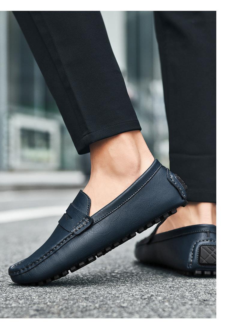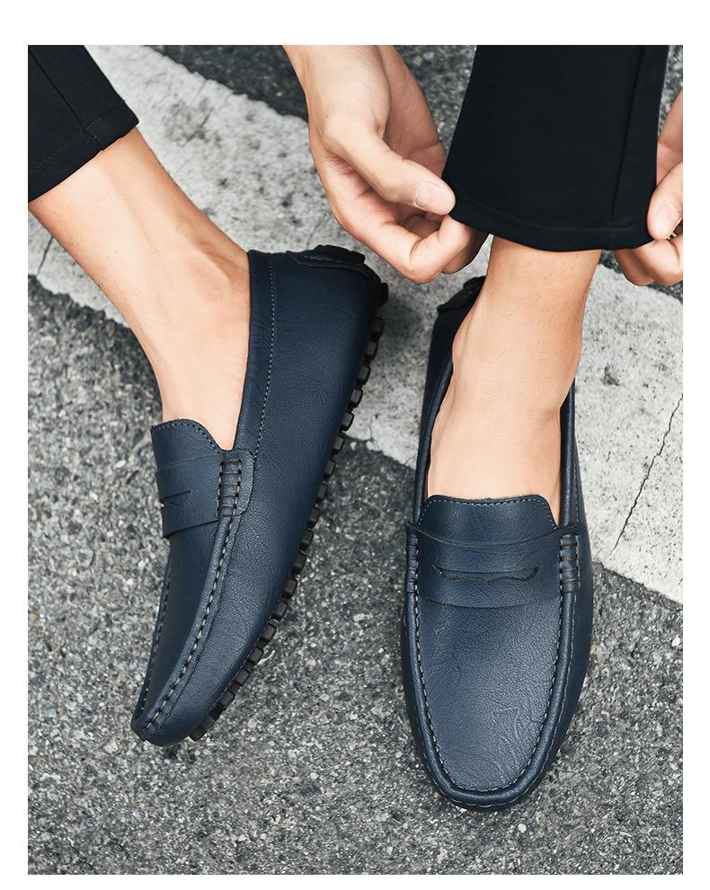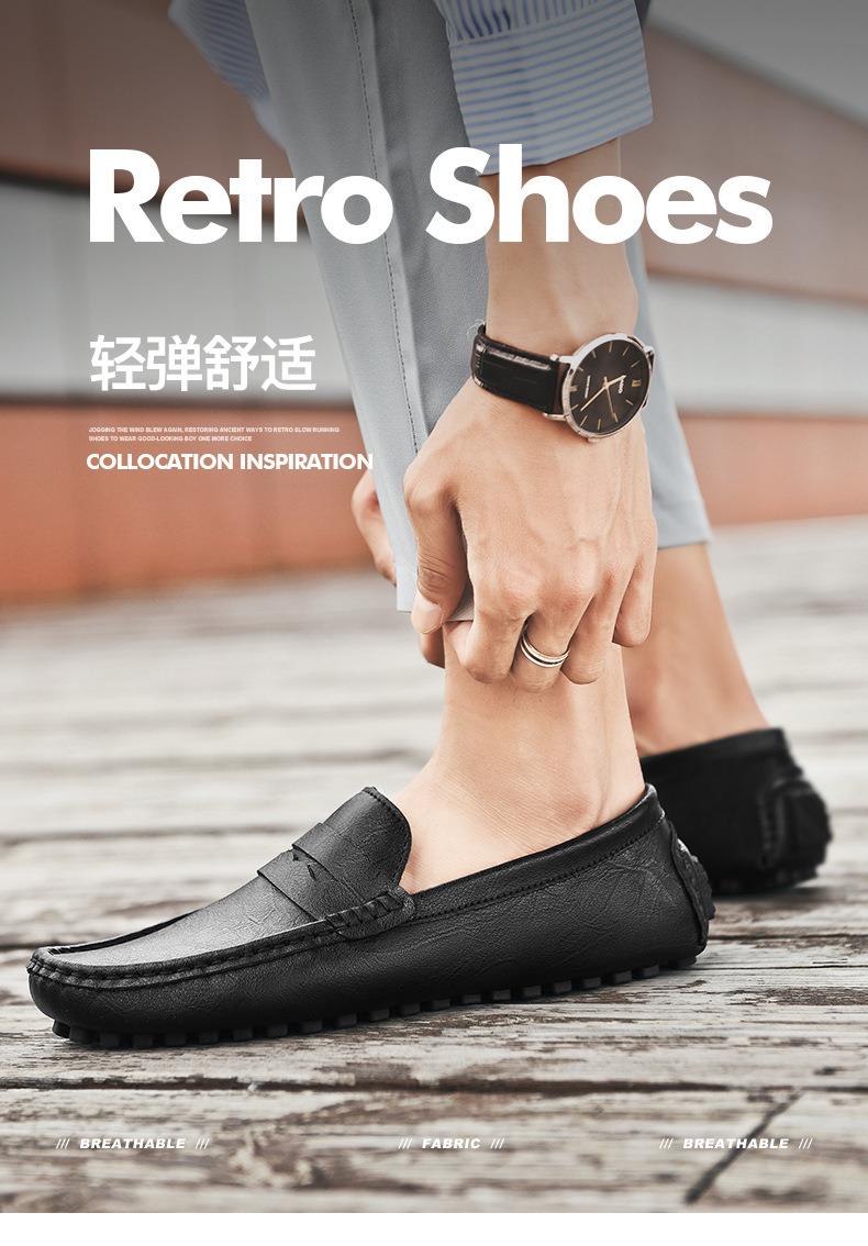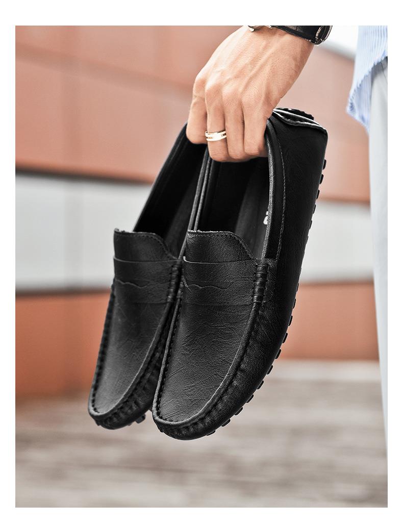 【百搭牛皮豆豆鞋】牛皮懒人驾车鞋休闲鞋手工缝线牛皮大码男鞋子
