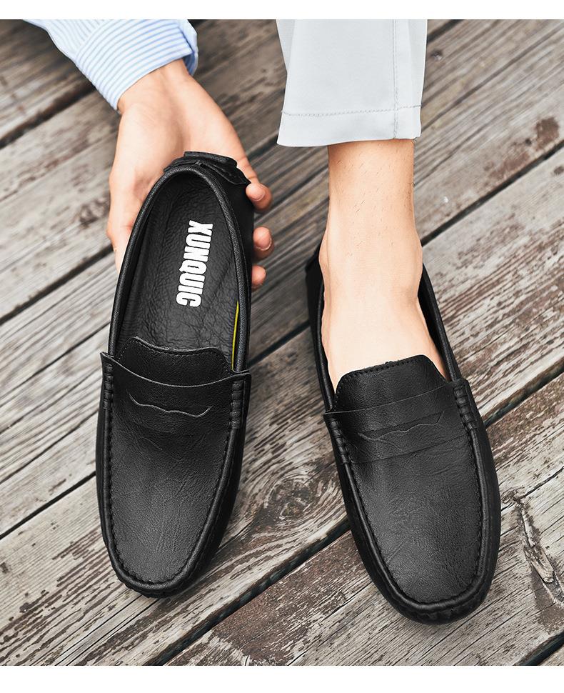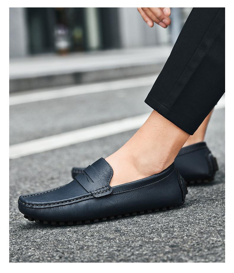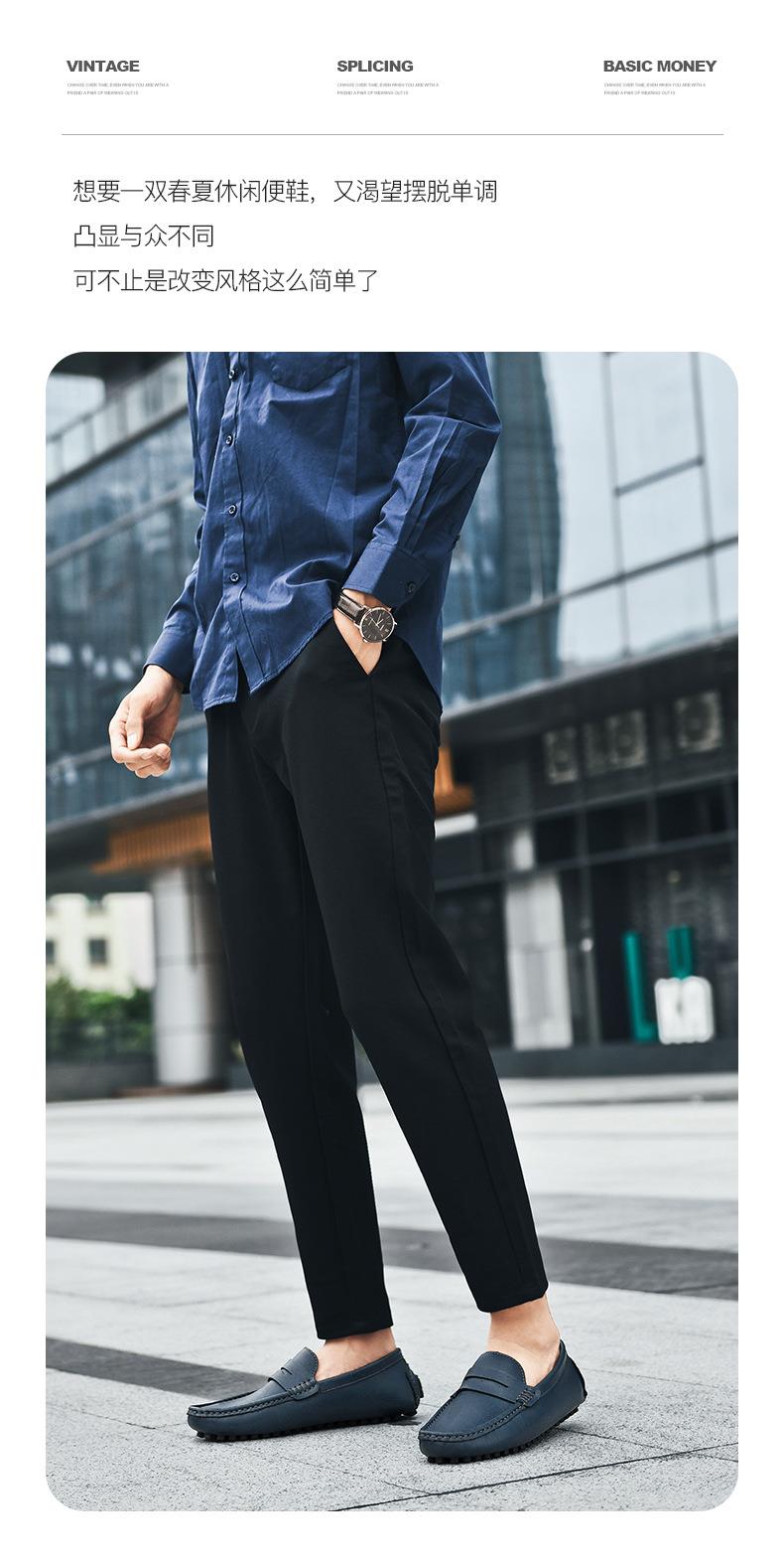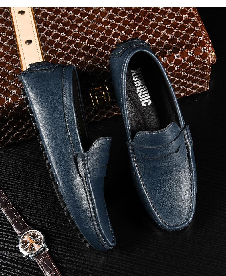 【百搭牛皮豆豆鞋】牛皮懒人驾车鞋休闲鞋手工缝线牛皮大码男鞋子