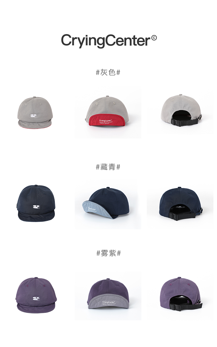 CryingCenter三色撞色户外休闲防晒翻檐鸭舌帽 含登山扣 哭喊中心