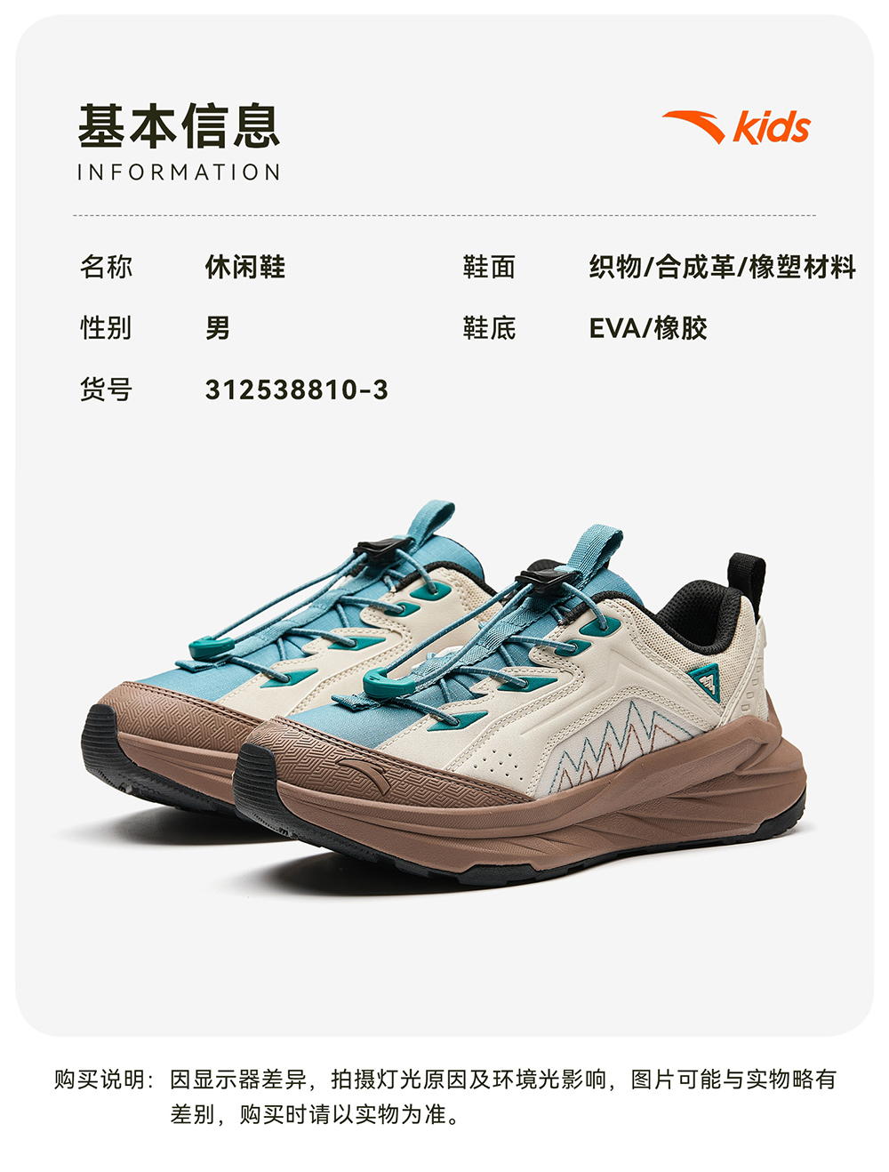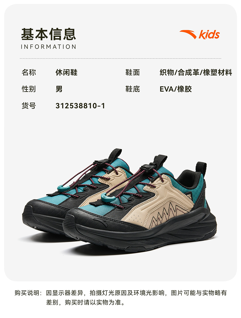 安踏儿童男大童休闲鞋2025秋季新款舒适防滑耐磨中大童低帮运动鞋312538810