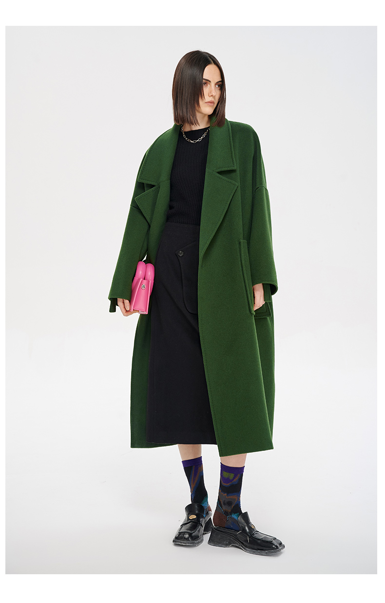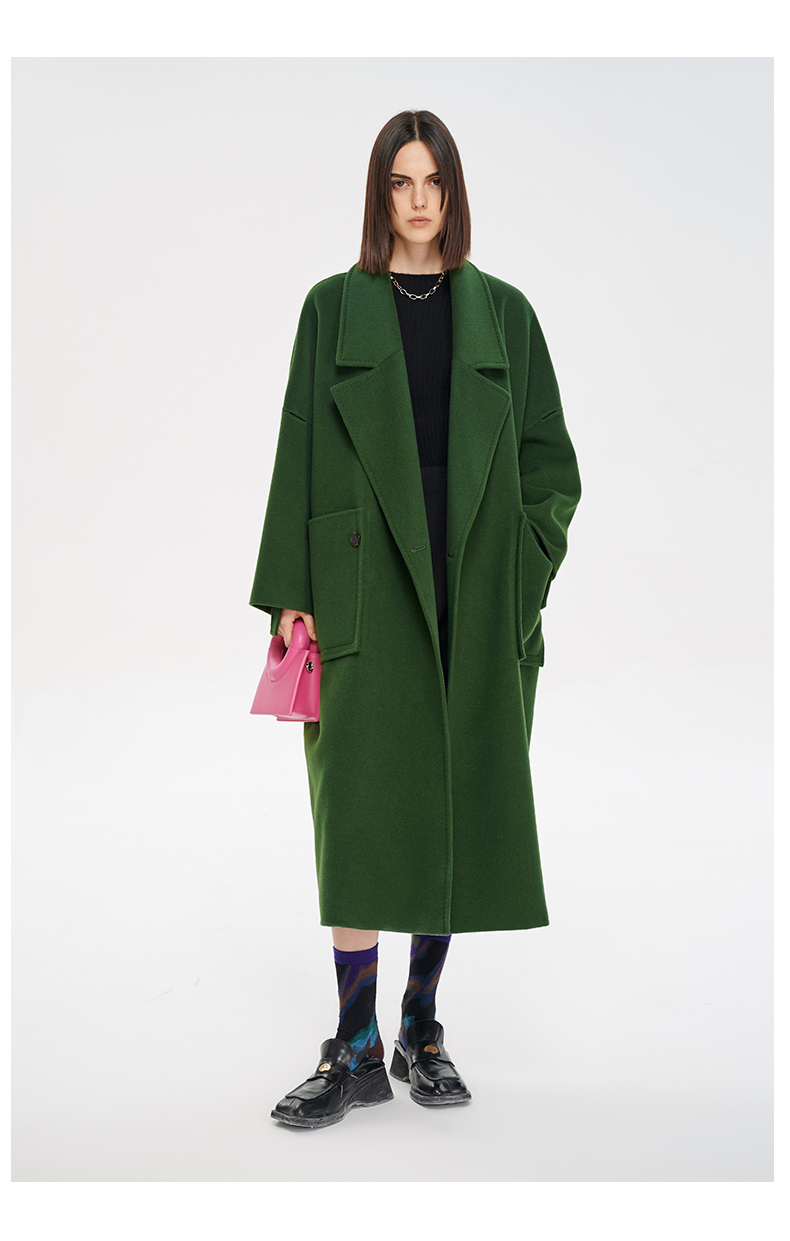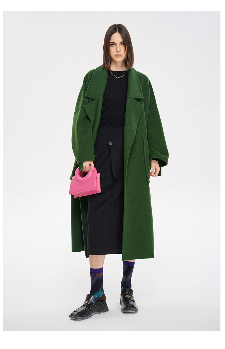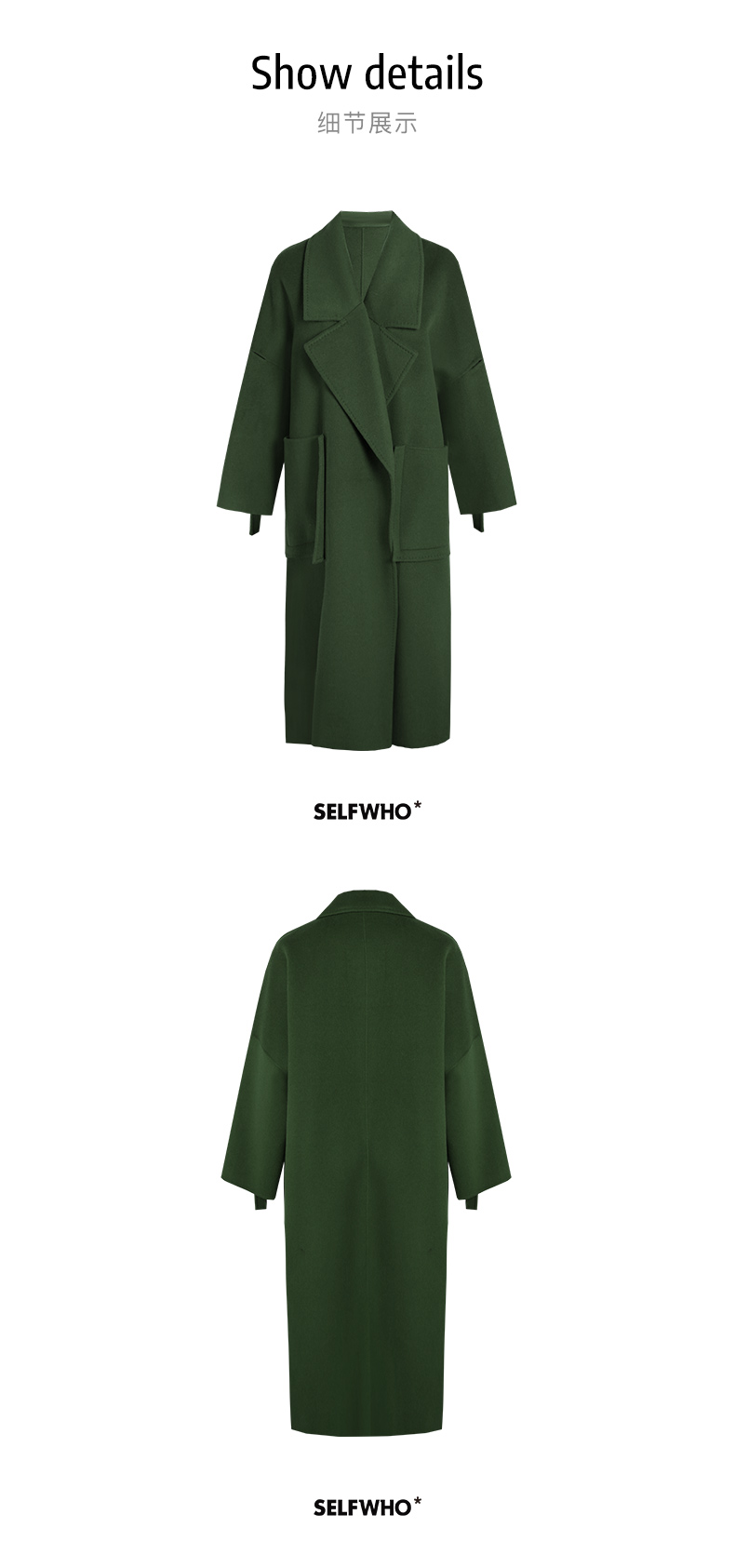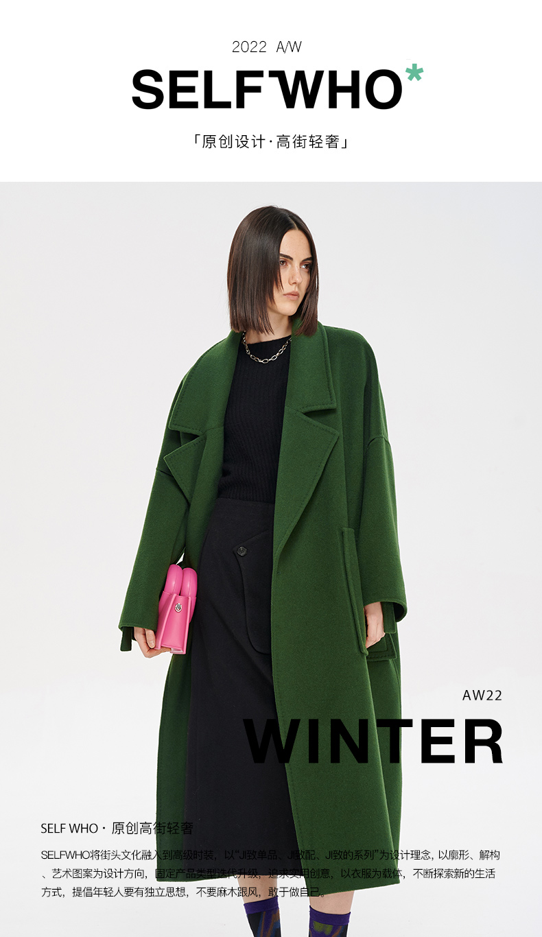 Self Who澳洲美丽诺全羊毛中长款毛呢外套女2022冬款双面呢子大衣