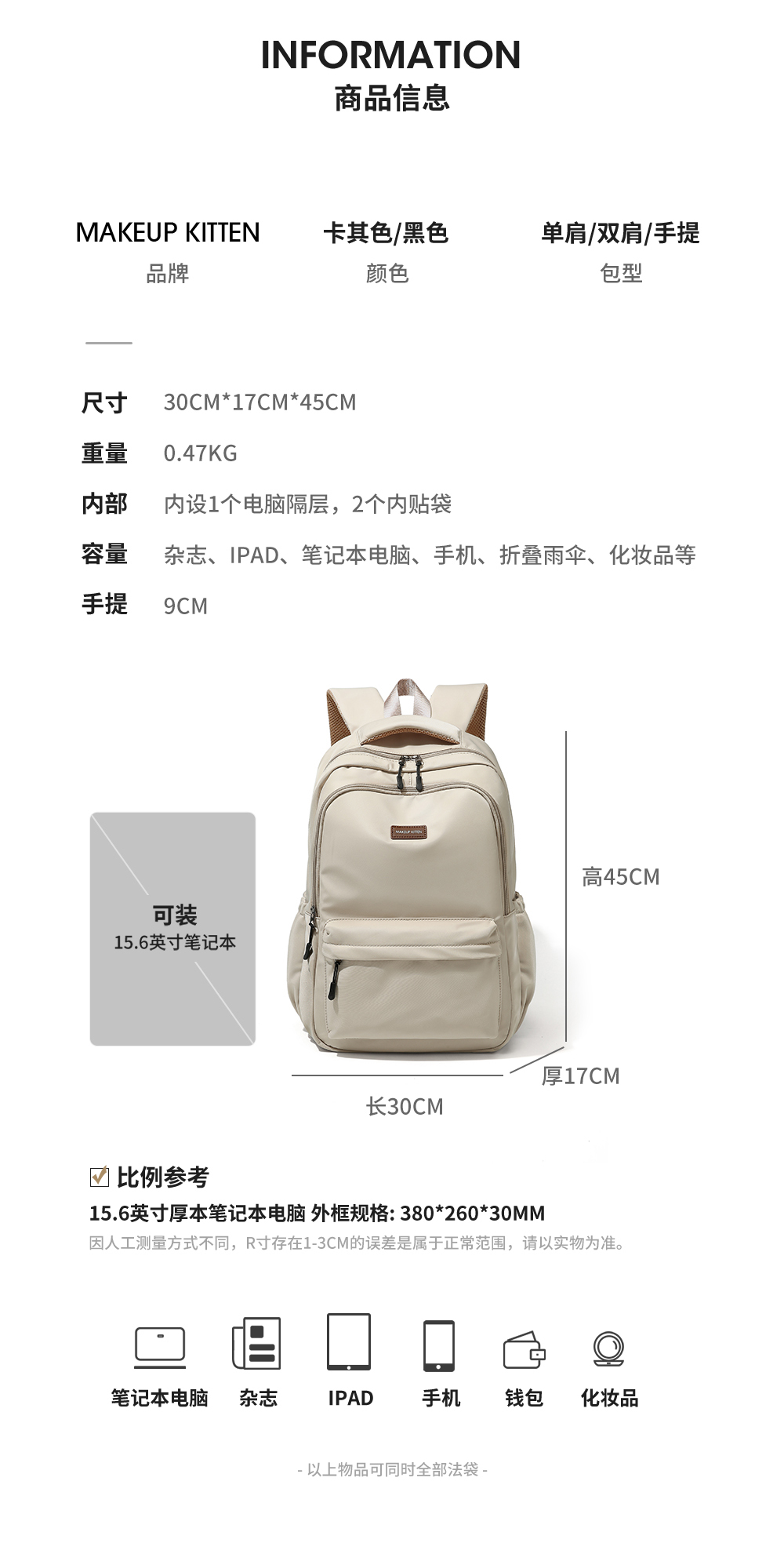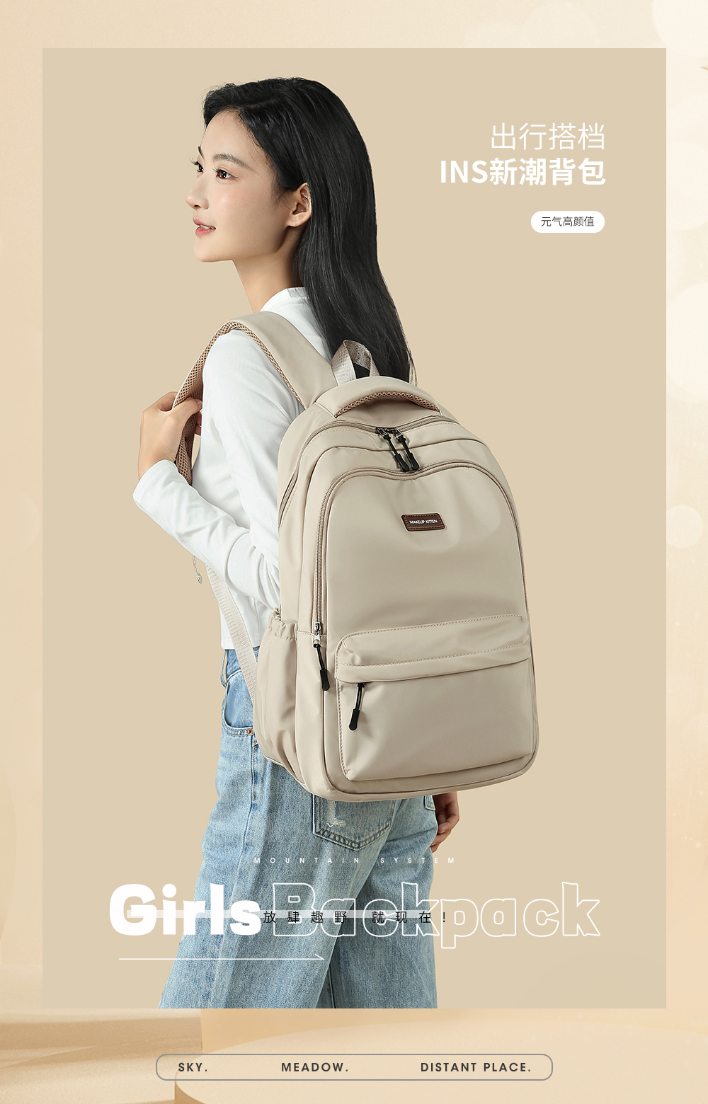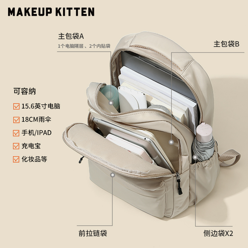 MAKEUP KITTEN 书包双肩包大容量高中初中女生大学背包3175730