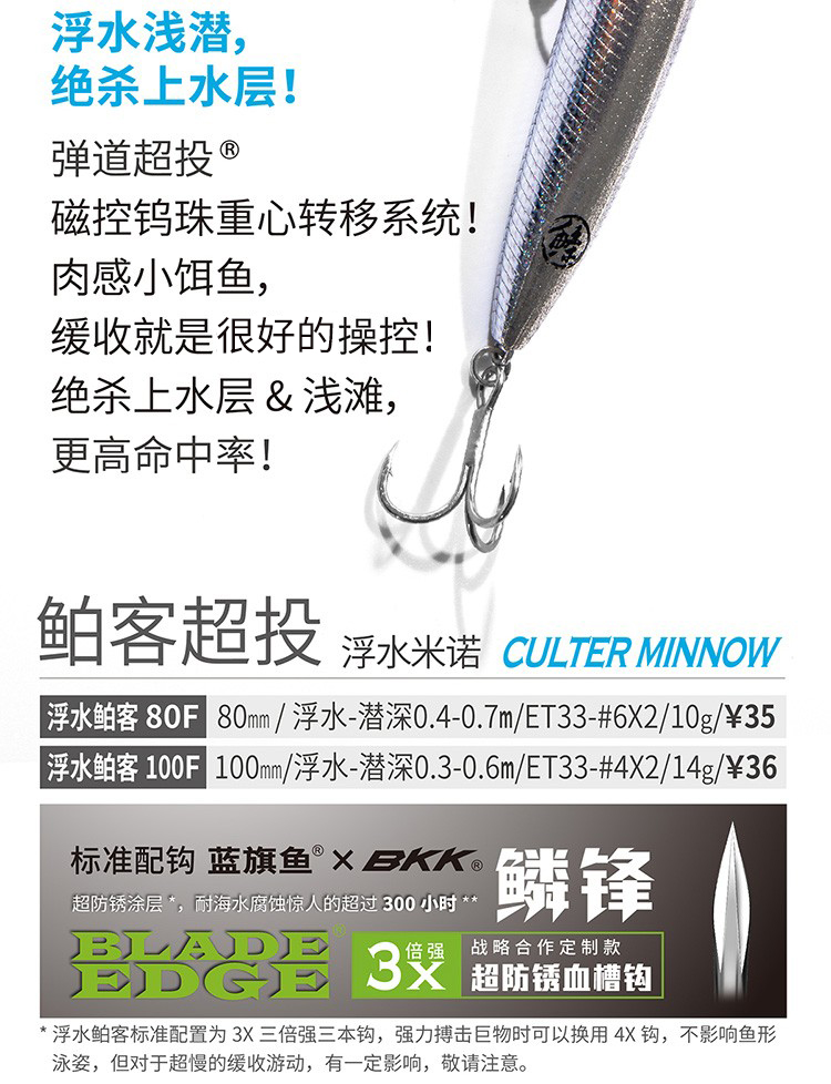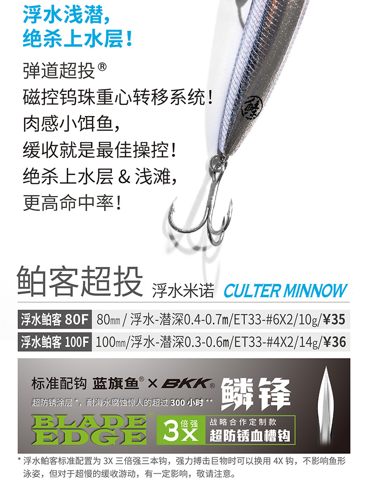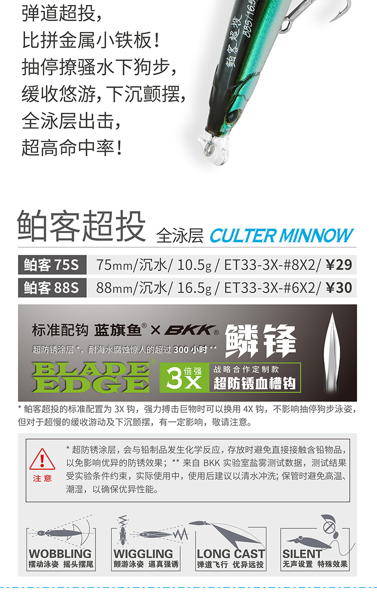 新品蓝旗鱼鲌客远投沉水米诺路亚饵泊客套装浮水假饵海鲈翘嘴专杀