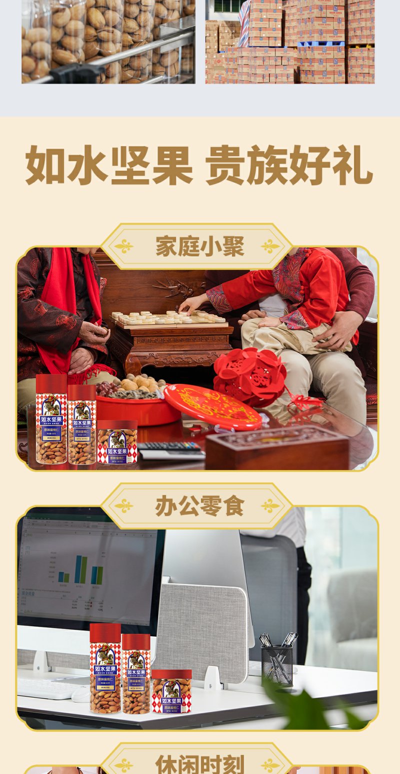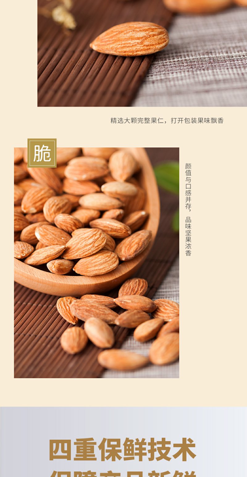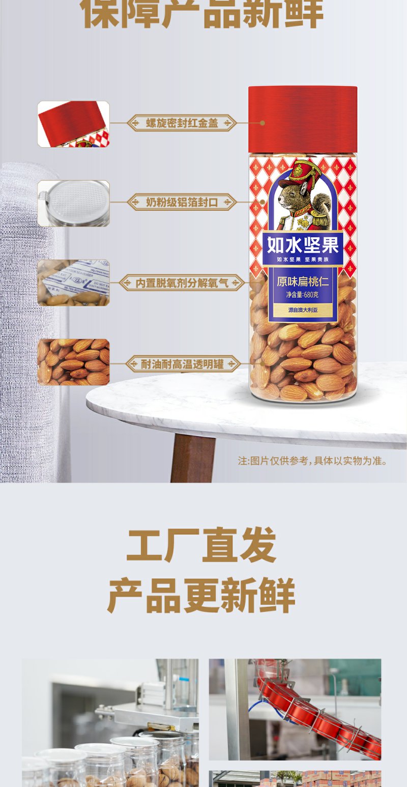 如水 原味扁桃仁 烘焙坚果仁休闲零食 680g/桶