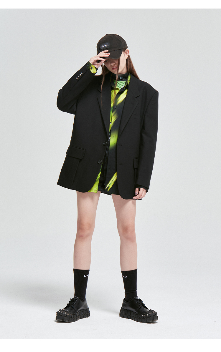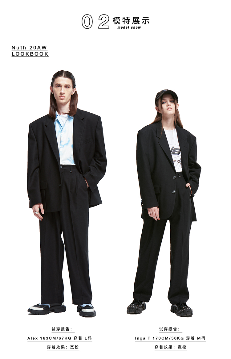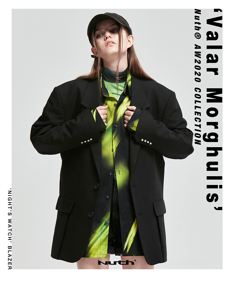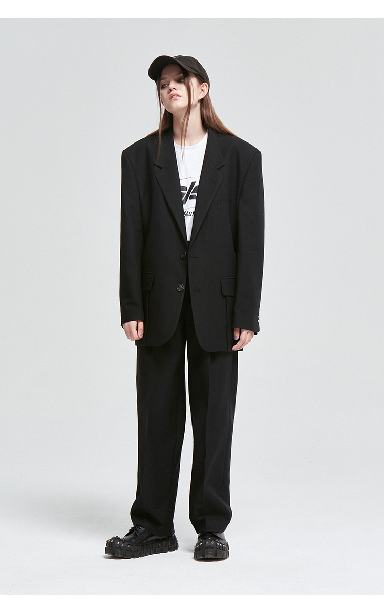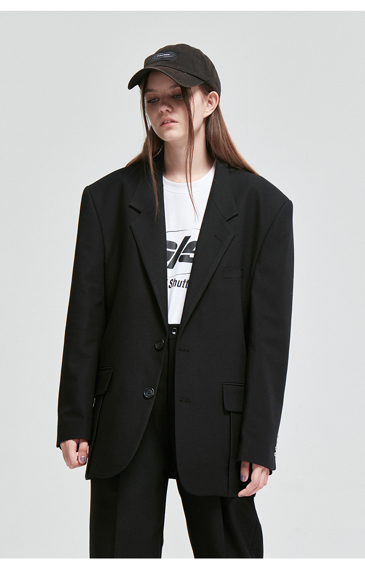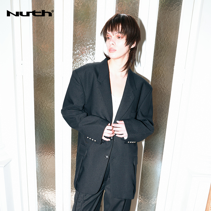 NUTH原创设计黑色大廓形宽垫肩宽松休闲西装男Oversize西服女百搭