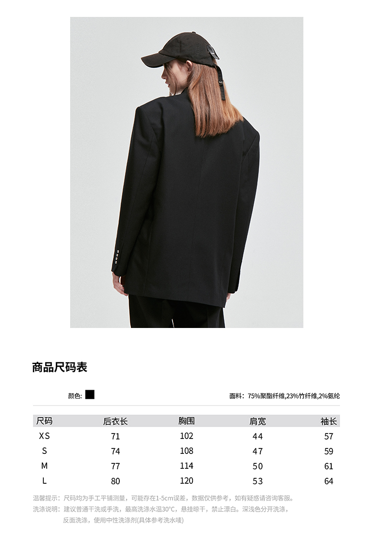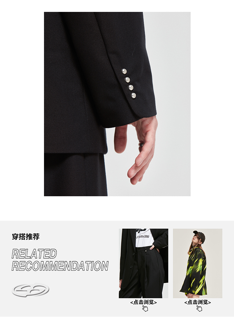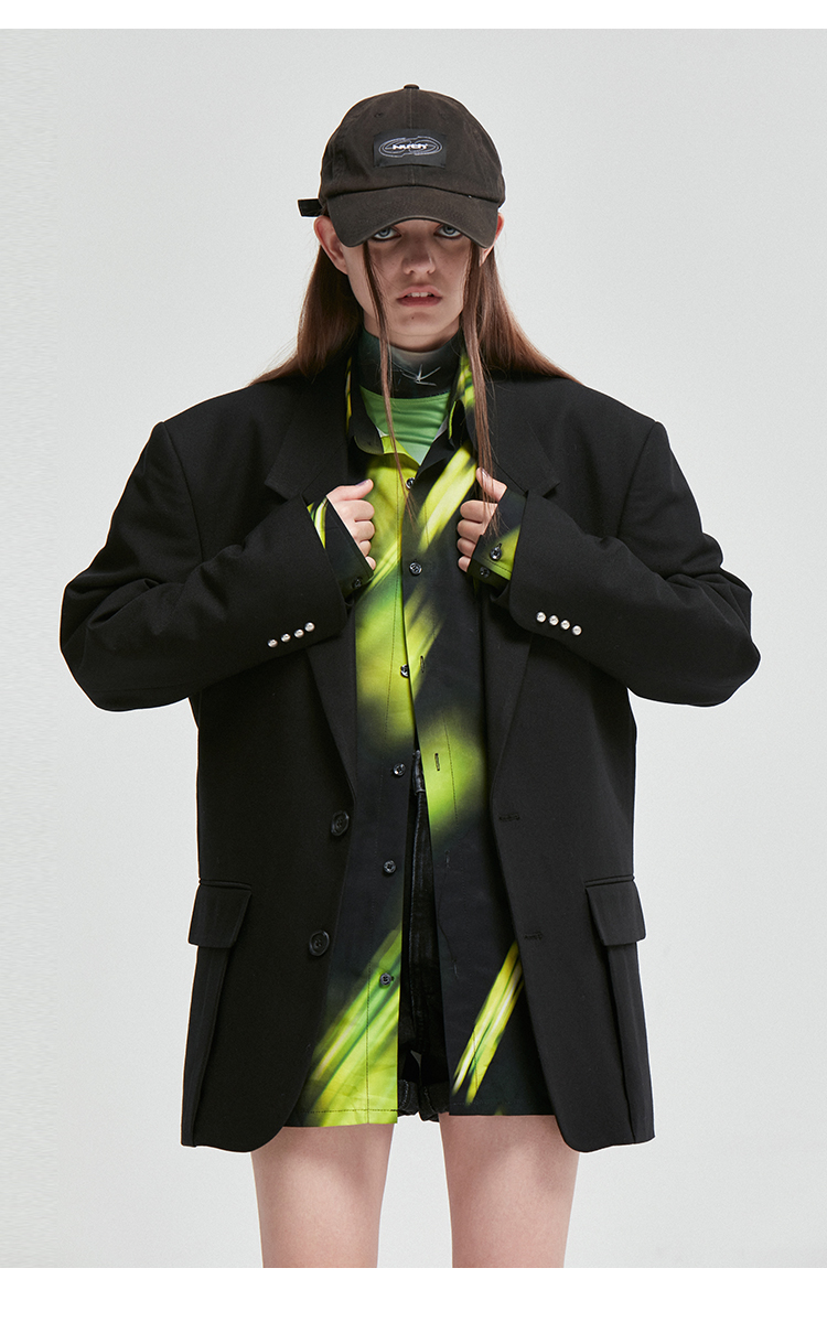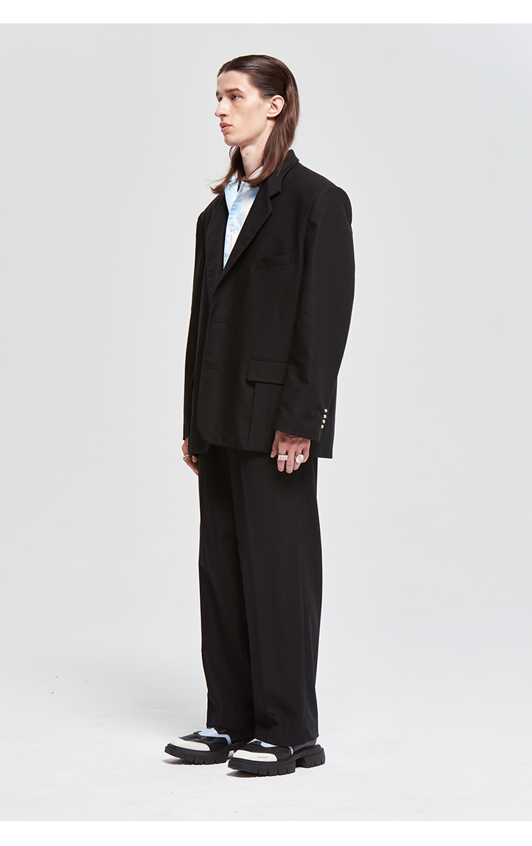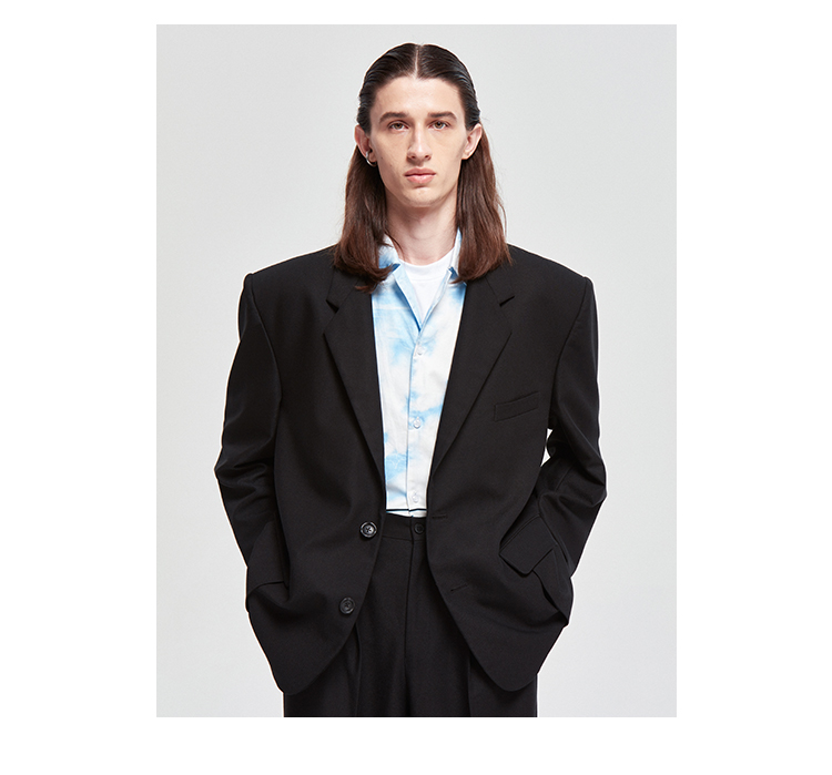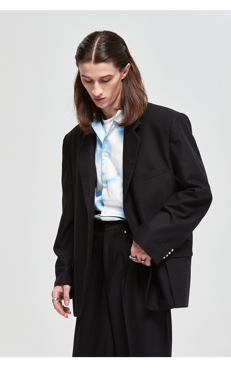 NUTH原创设计黑色大廓形宽垫肩宽松休闲西装男Oversize西服女百搭