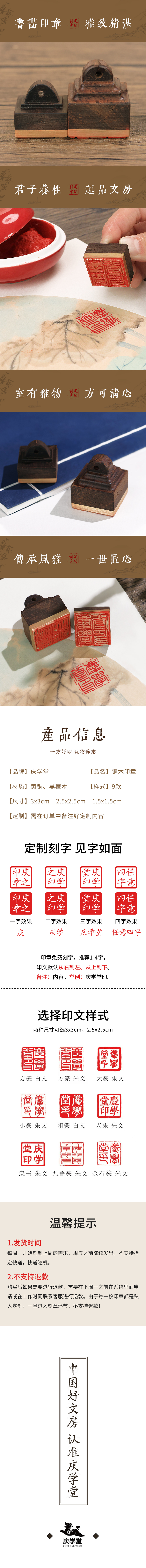 【庆学堂】臻品-铜木定制印章 黄铜+黑檀木刻章 人名章/闲章(机器)印章 【下单备注内容】