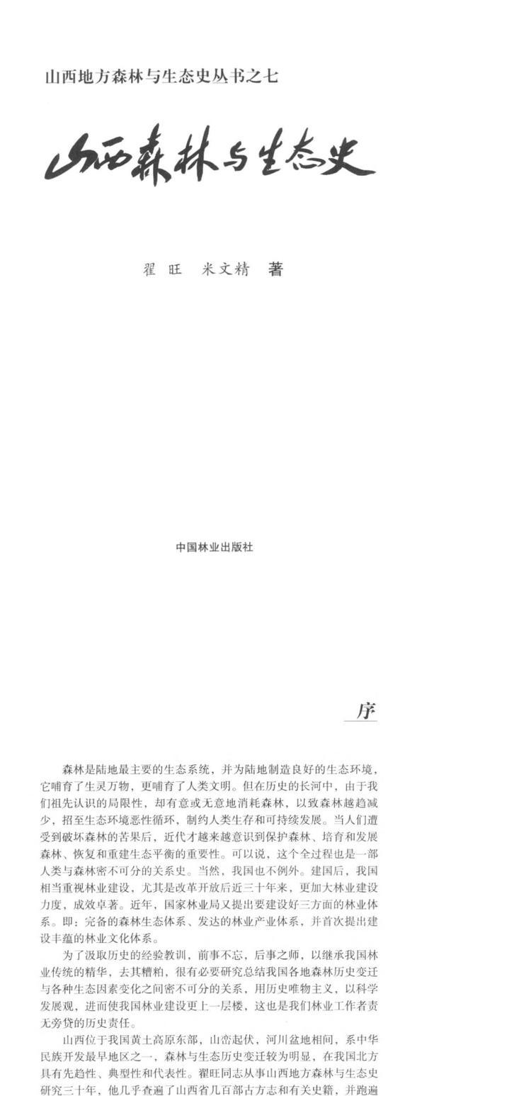 山西森林与生态史 中国林业出版社 科技