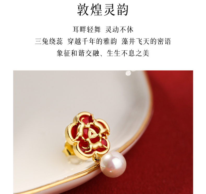 敦煌研究院【敦煌珠蕊三兔耳钉】 耳饰女精致文创礼品生日礼物送女友