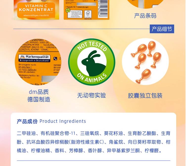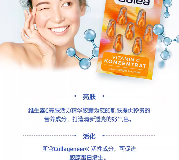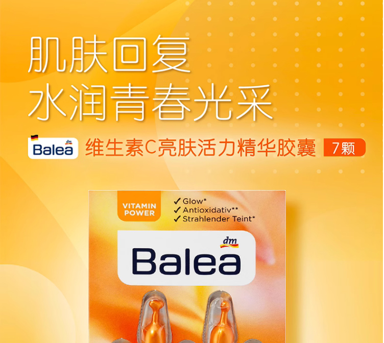 【保税仓】Balea芭乐雅玻尿酸安瓶精华1ml*7支装、眼唇精华胶囊、维生素C亮肤精华胶囊7粒