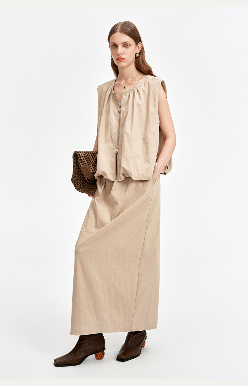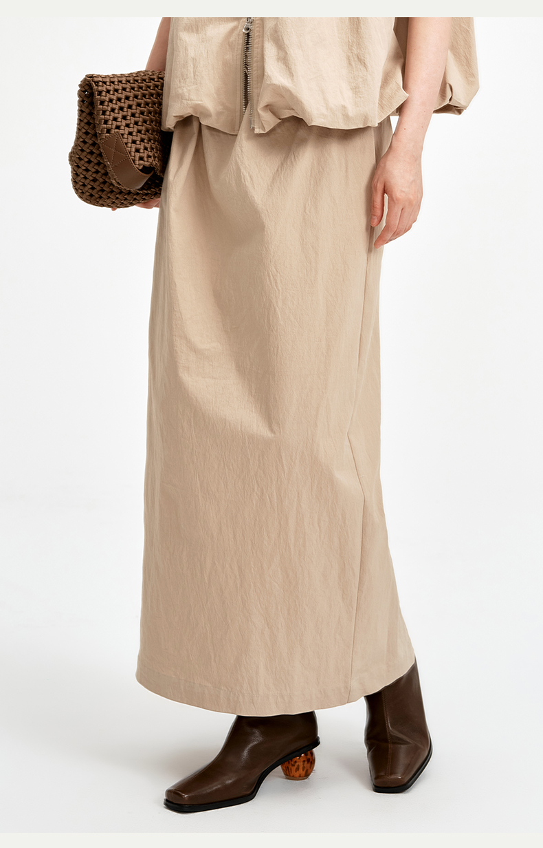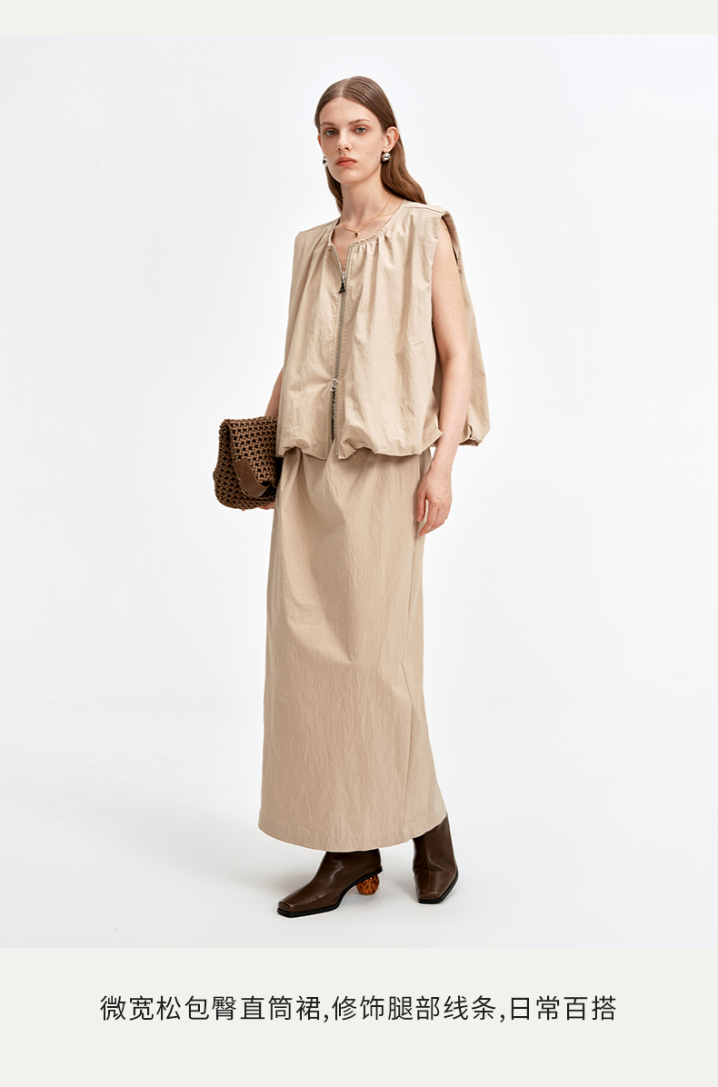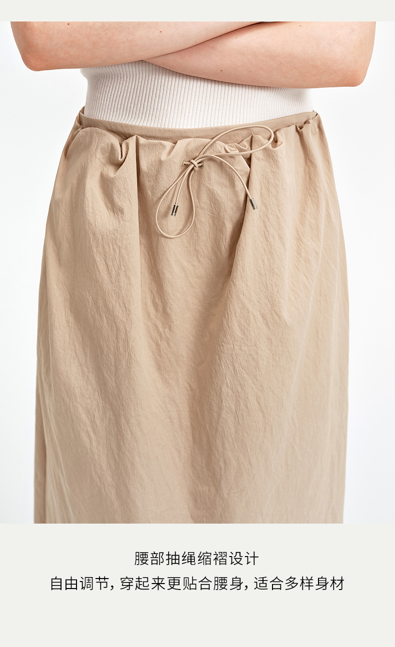 SELFWHO半身裙女夏2024新款设计感抽绳休闲高腰显瘦包臀直筒裙子