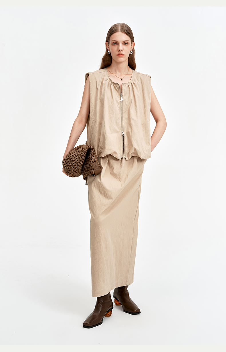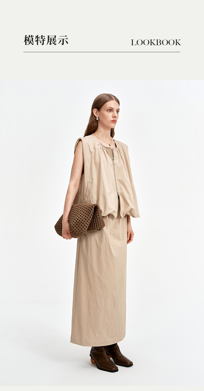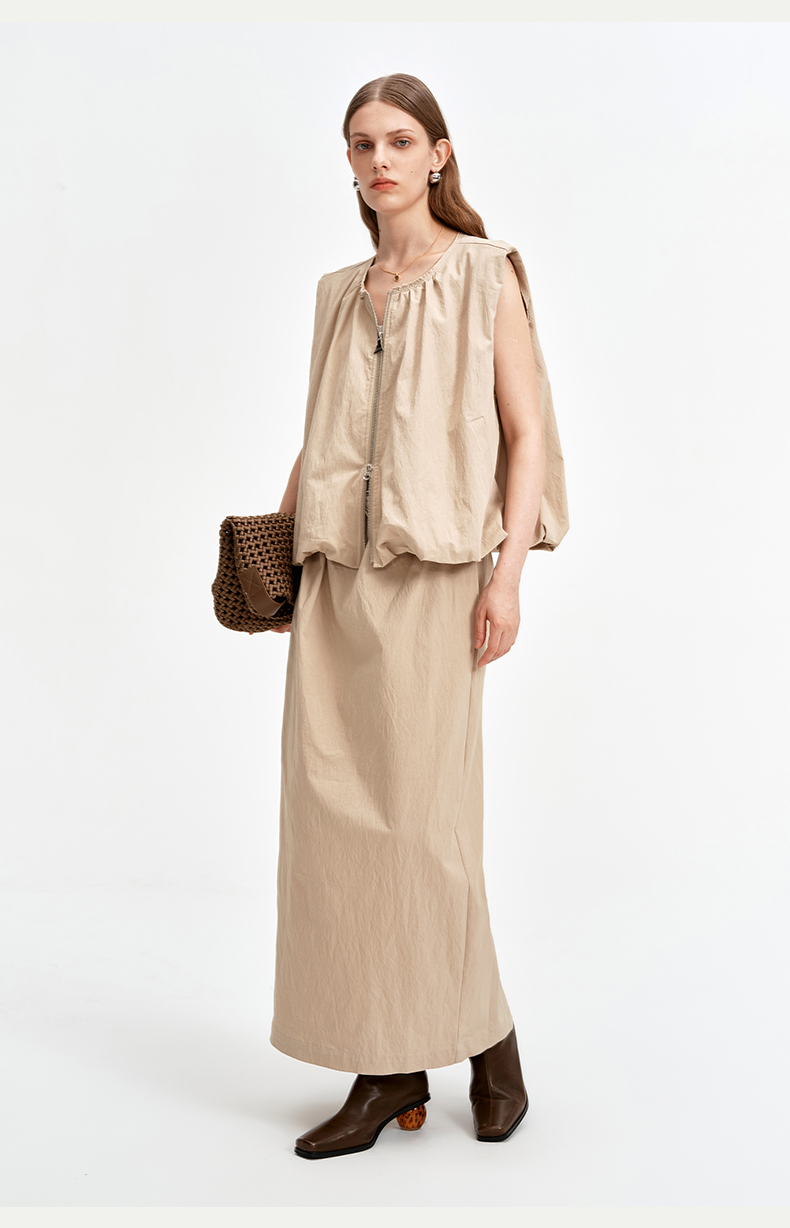 SELFWHO半身裙女夏2024新款设计感抽绳休闲高腰显瘦包臀直筒裙子