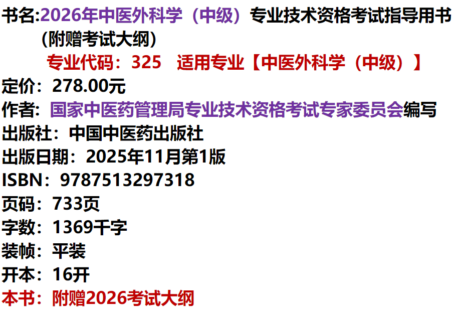 2026年中医外科学(中级)专业技术资格考试指导用书 专业代码325 国家中医药管理局专业技术资格考试专家委员会 中国中医药出版社