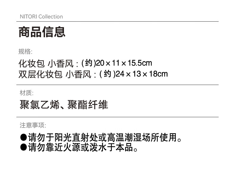 NITORI宜得利家居 便携护肤品化妆品收纳包化妆包洗漱洗浴包 小香风