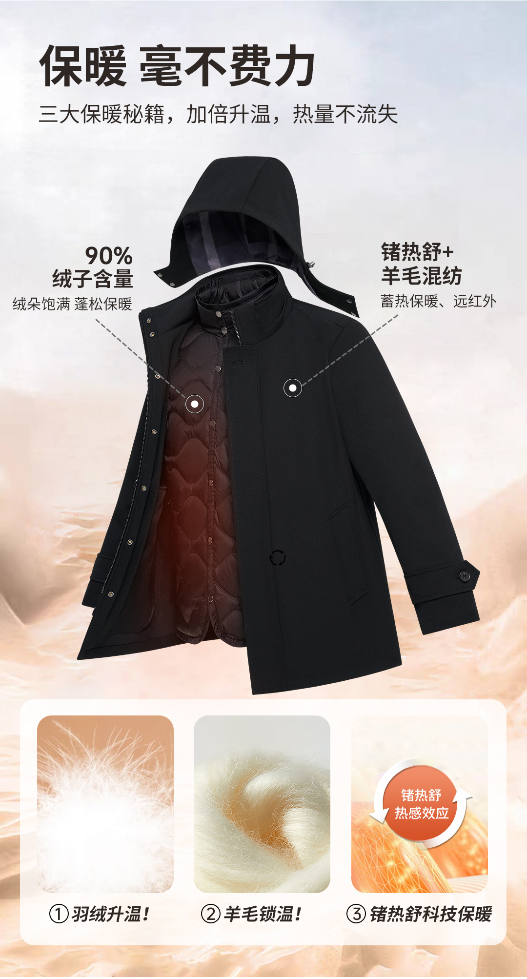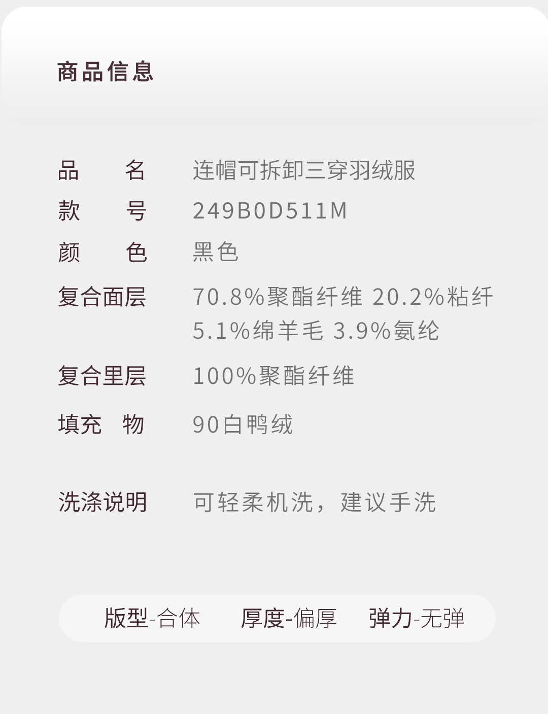【太空二号】三防三穿90白鸭绒中长款羽绒服249B0D511M