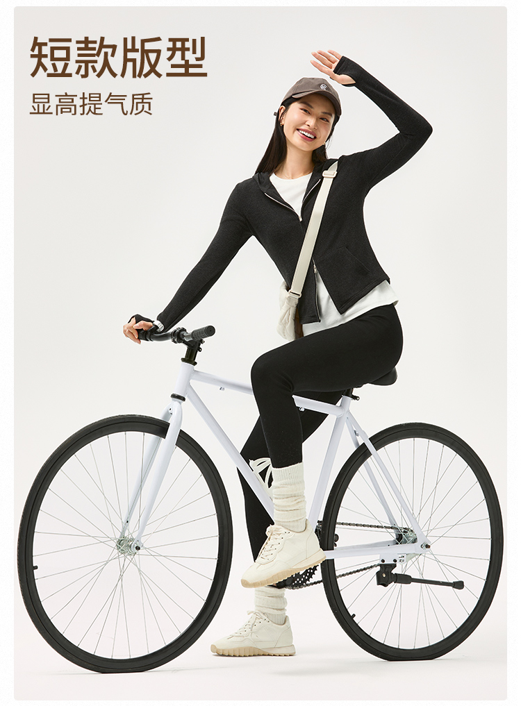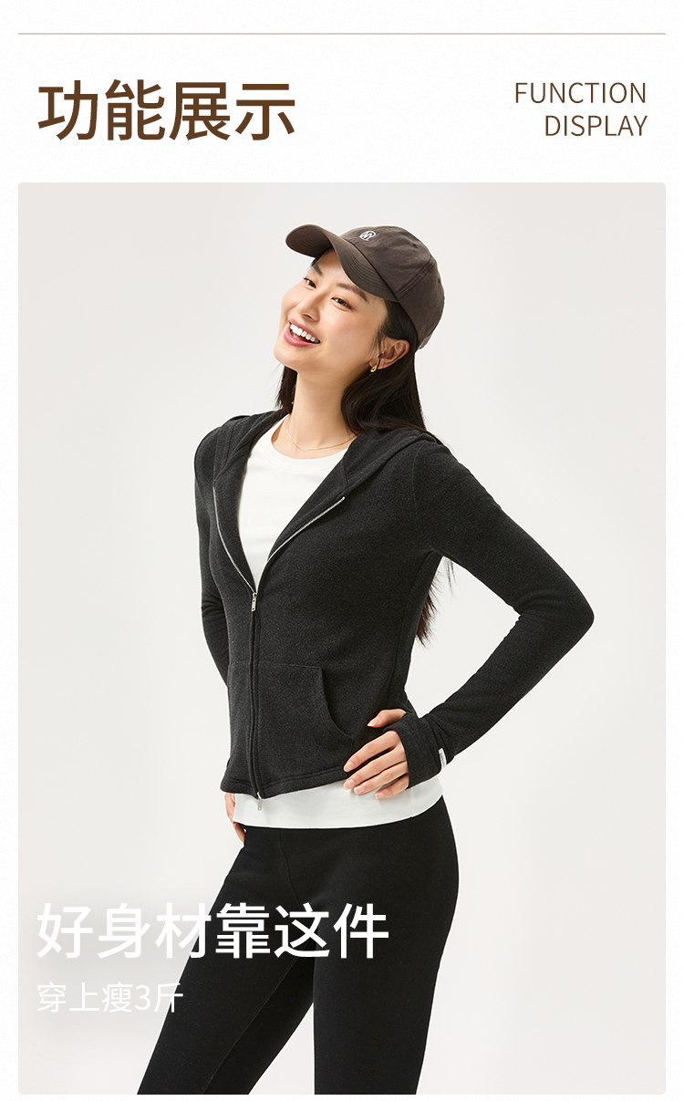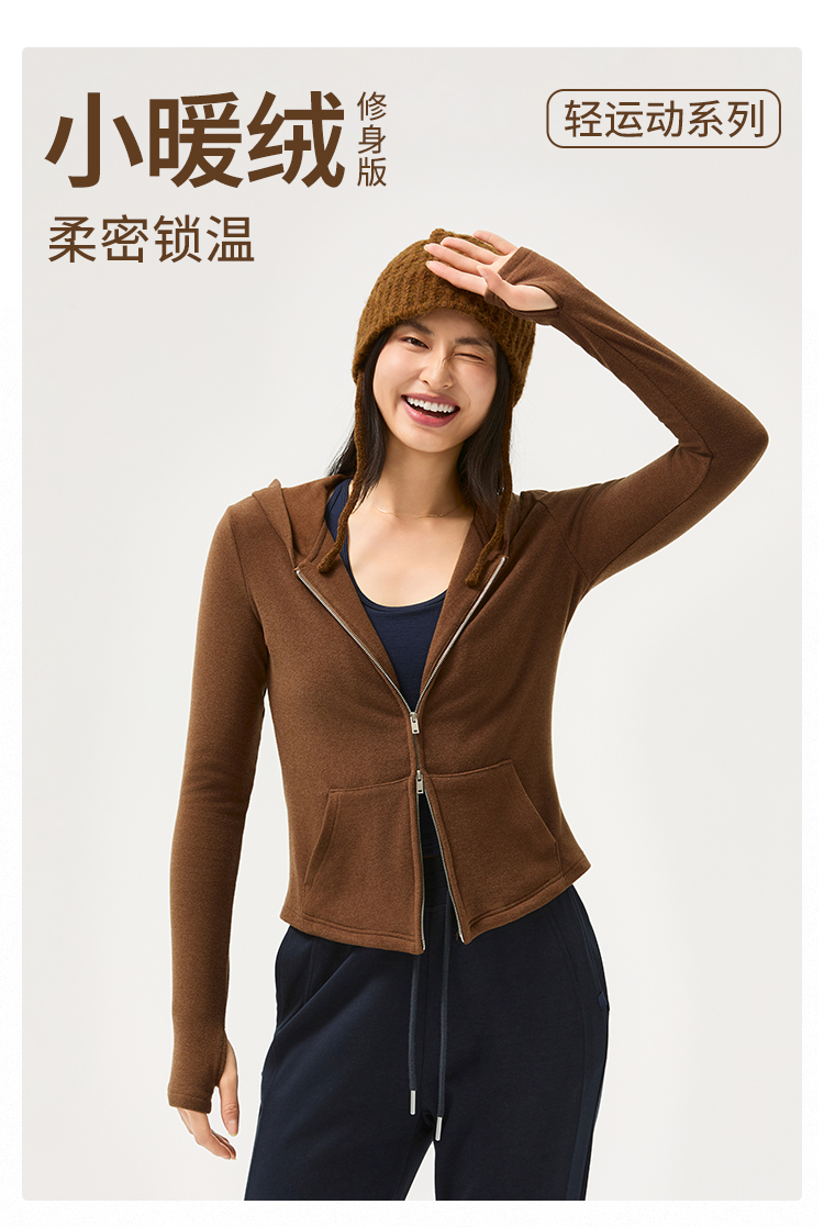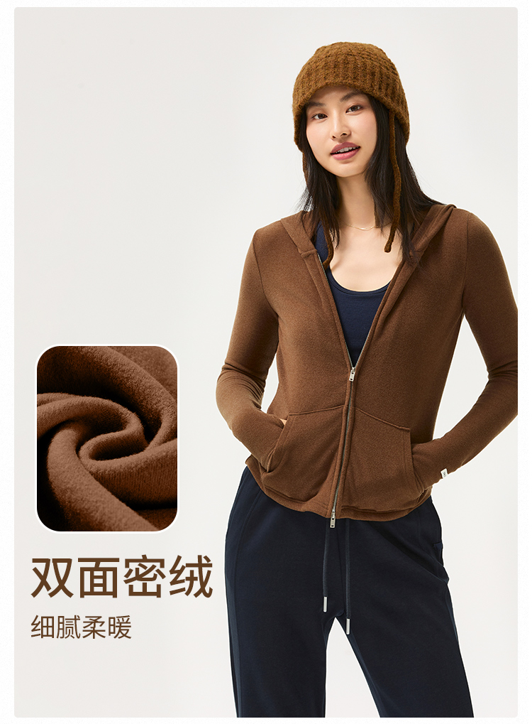【sw速惟】开衫连帽卫衣女双面抓绒短款拉链保暖外套1433