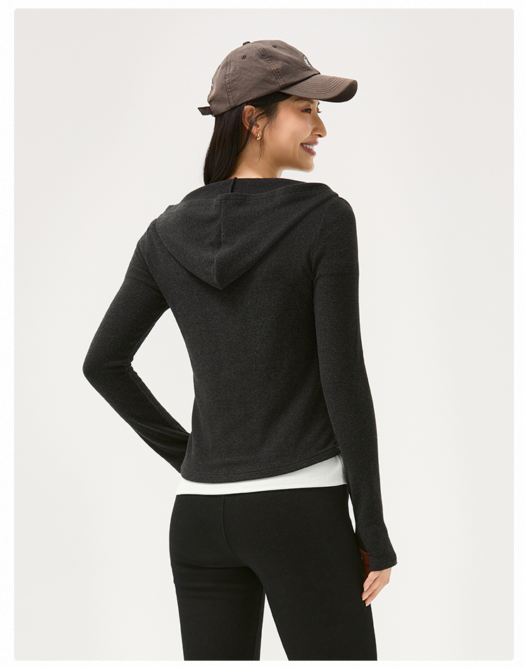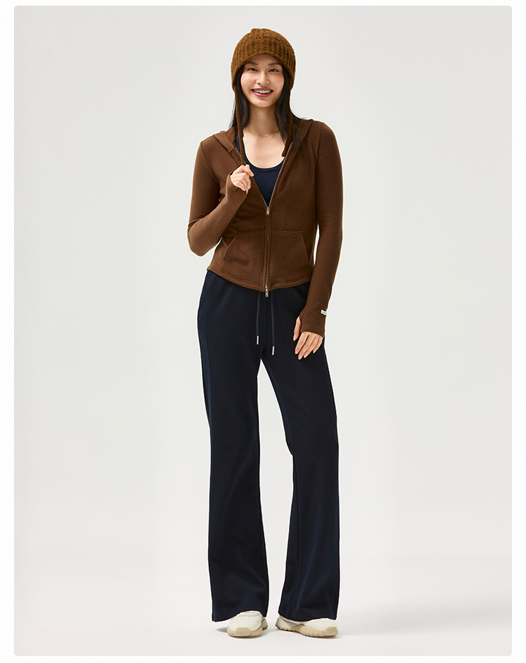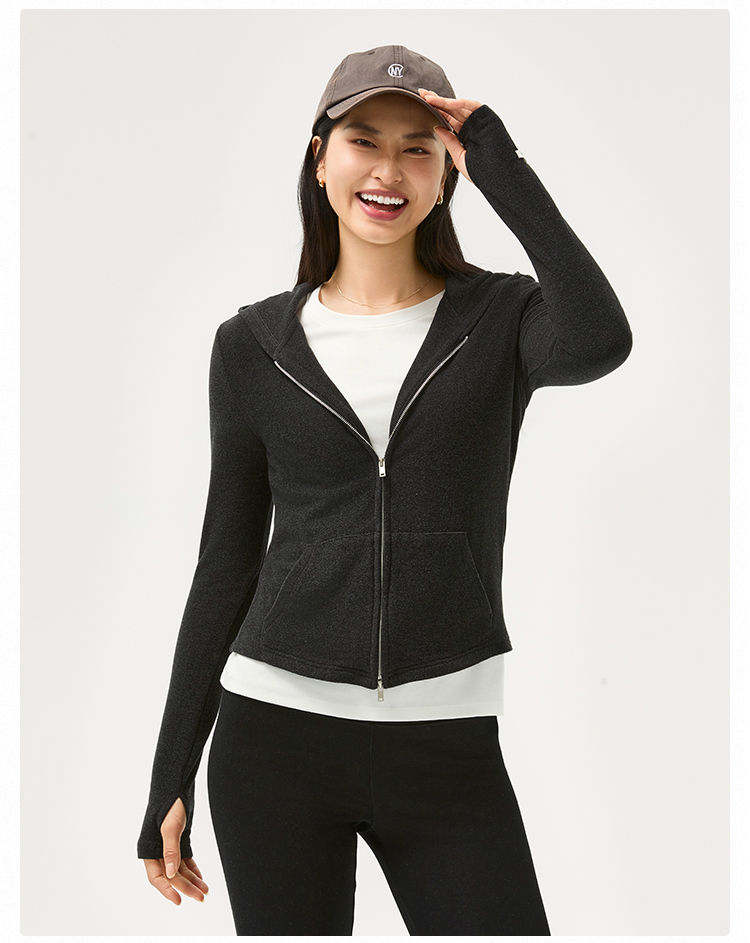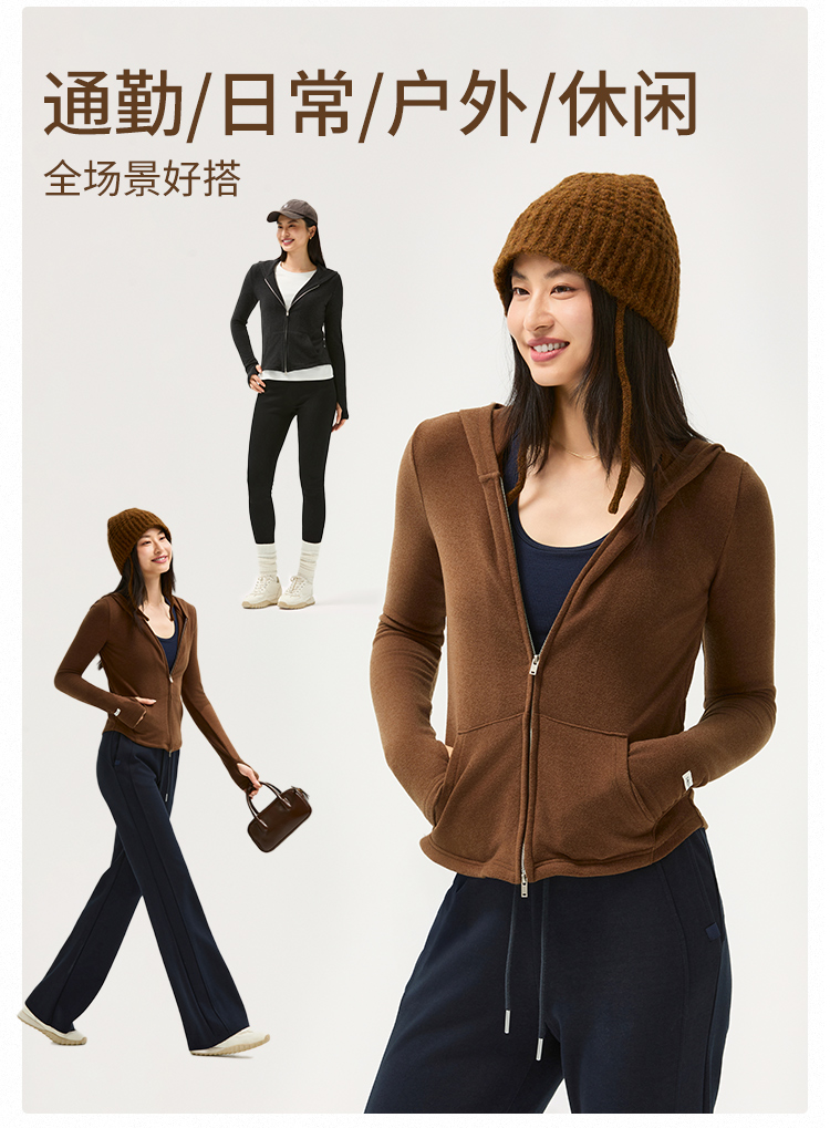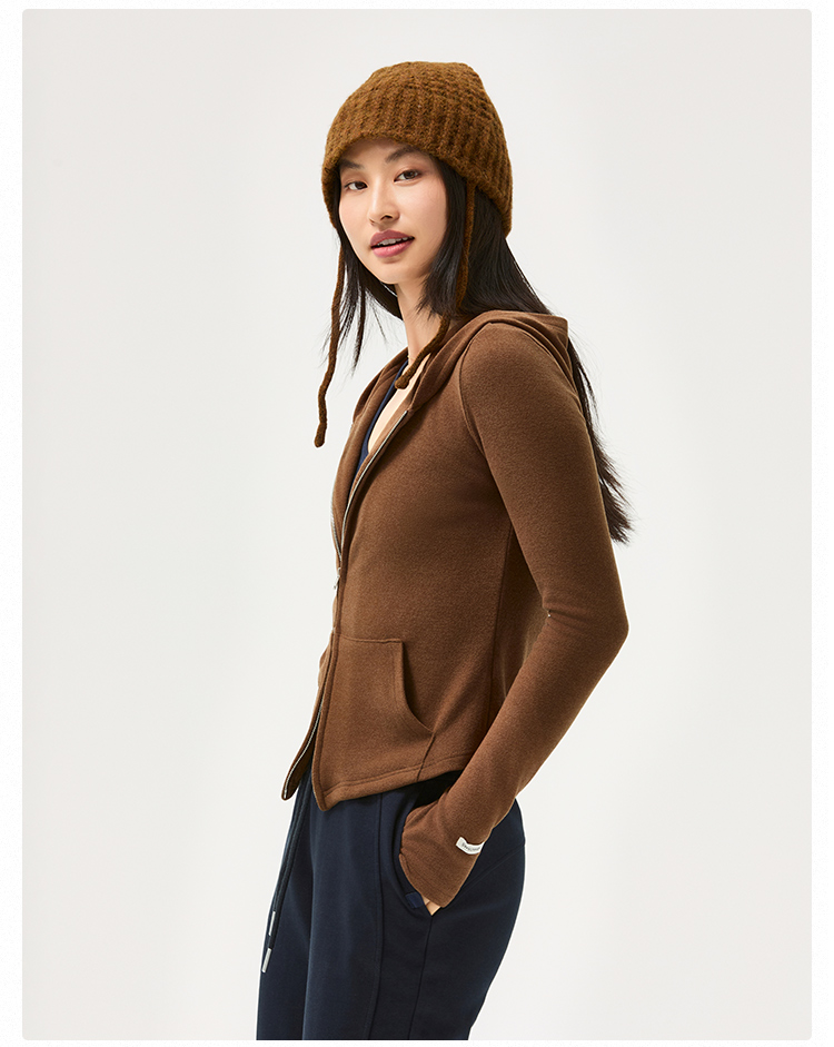 【sw速惟】开衫连帽卫衣女双面抓绒短款拉链保暖外套1433