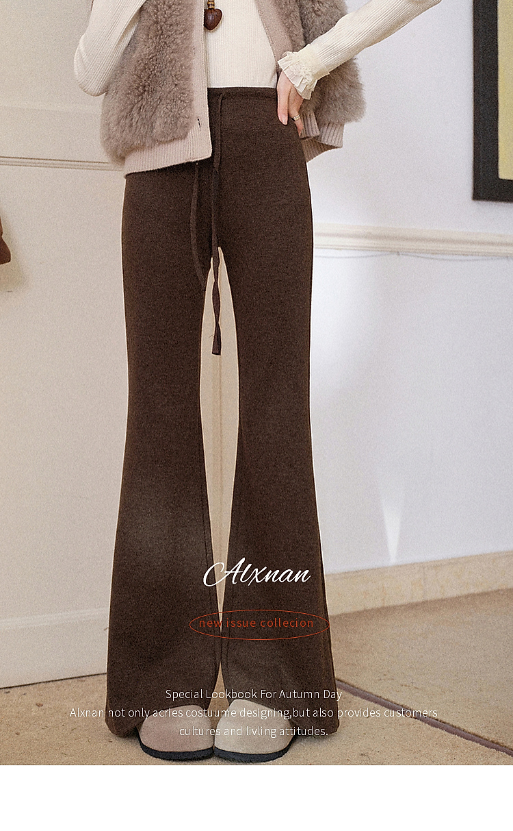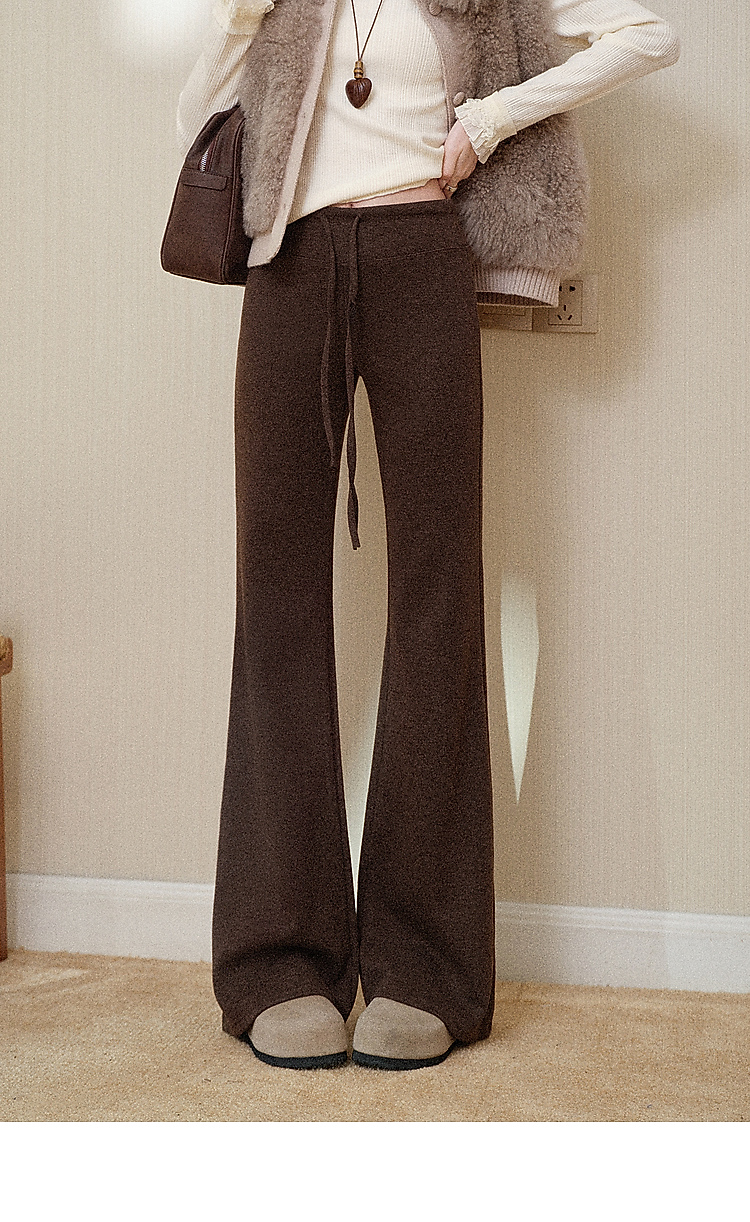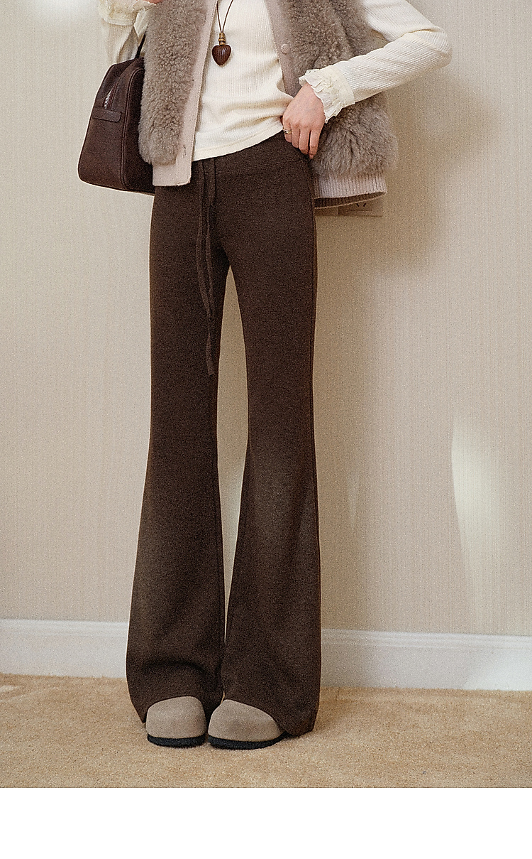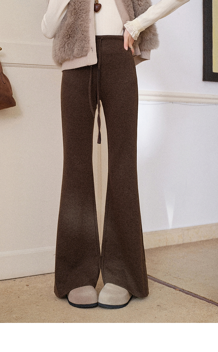鹿向南「星暮艾蕾」微喇修身咖色休闲裤女秋冬高腰显瘦阔腿长裤子