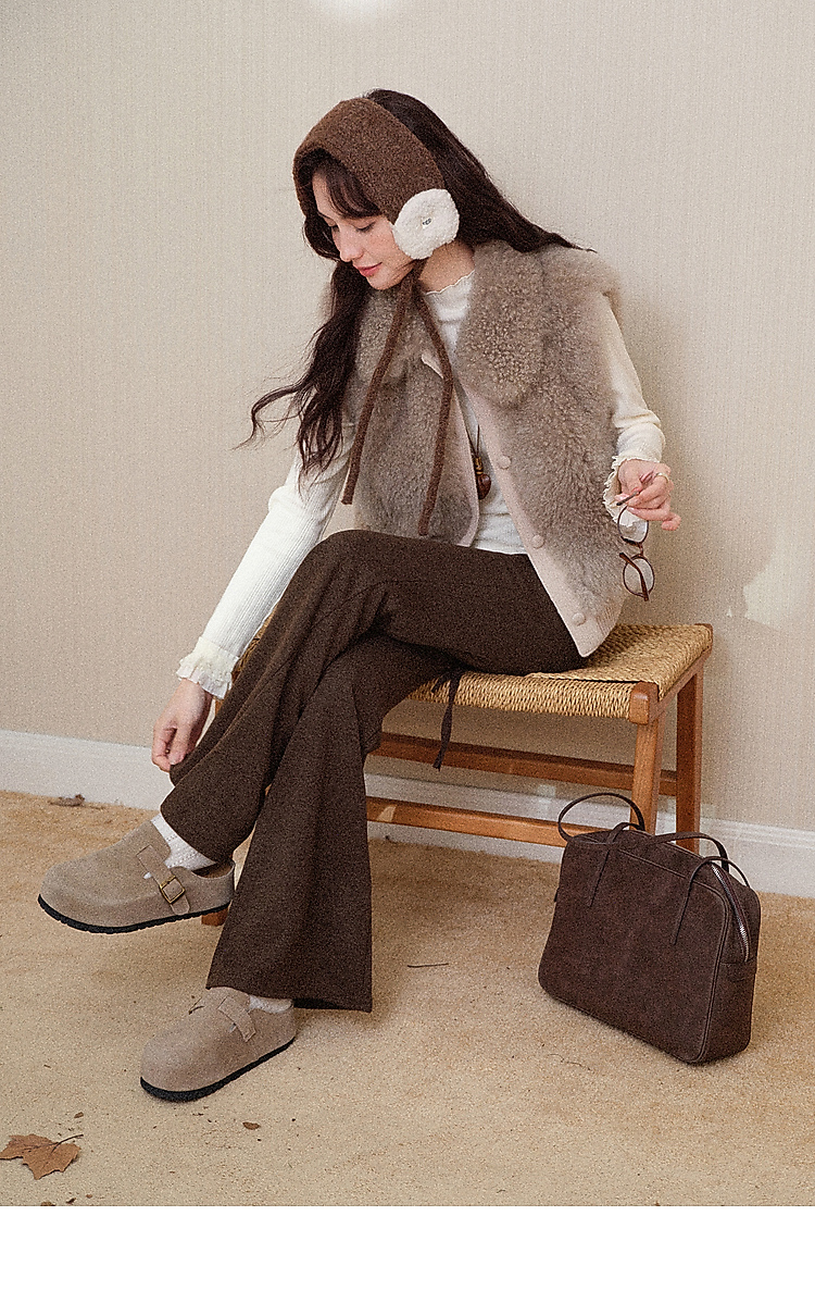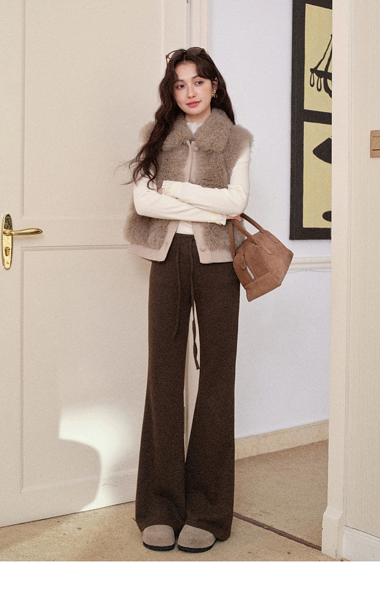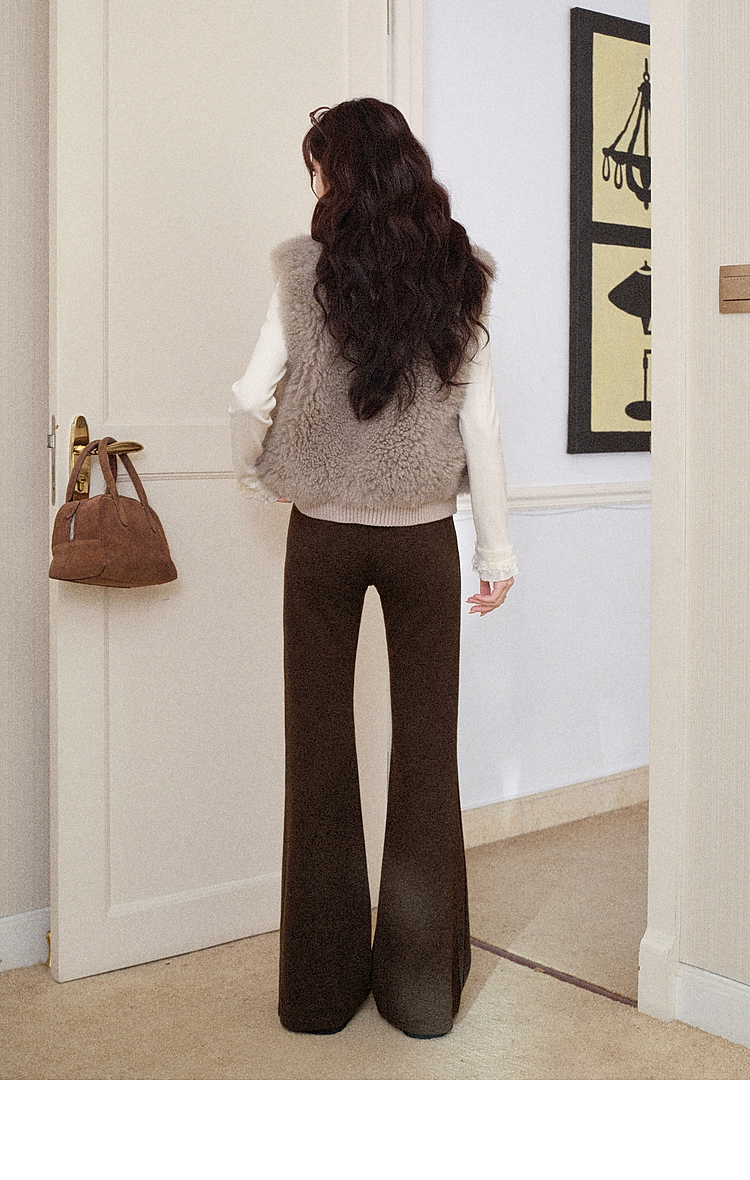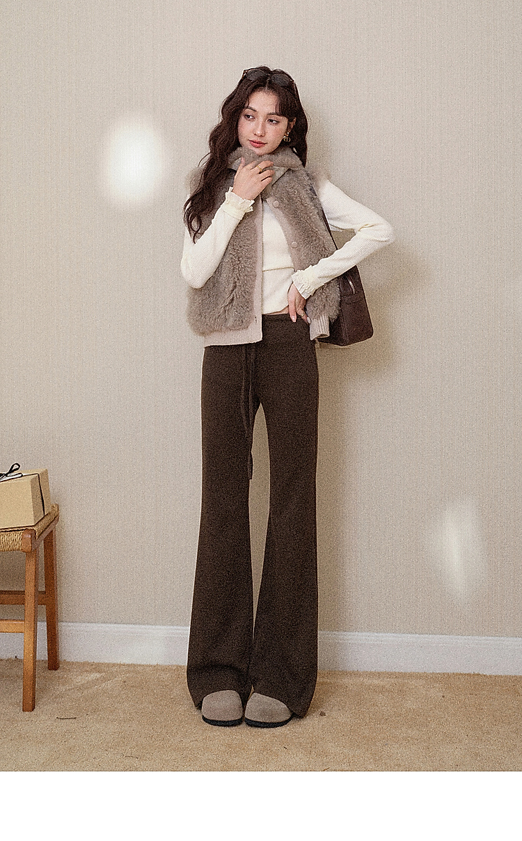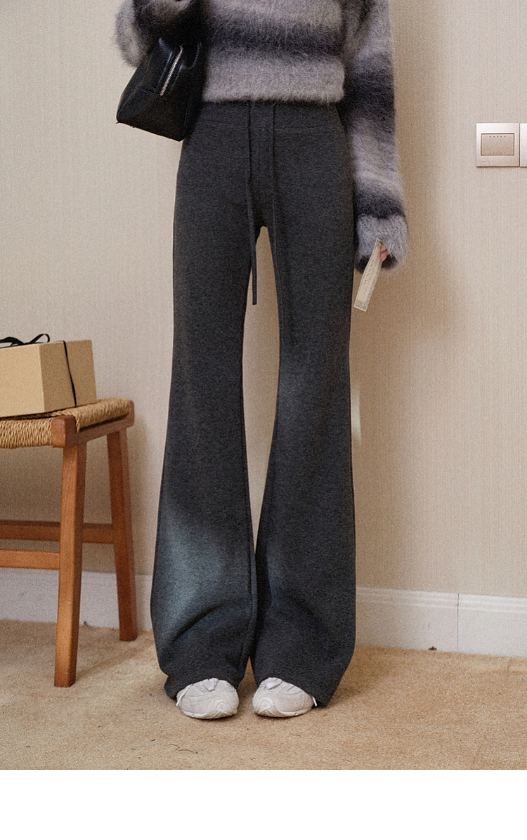 鹿向南「星暮艾蕾」微喇修身咖色休闲裤女秋冬高腰显瘦阔腿长裤子