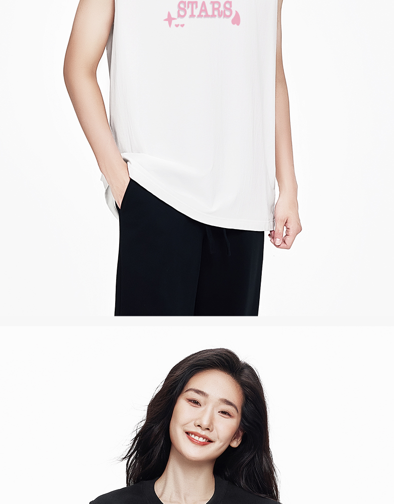 「棉的美学」纯棉粉色蝴蝶坎肩印花背心夏季宽松休闲家居无袖T恤