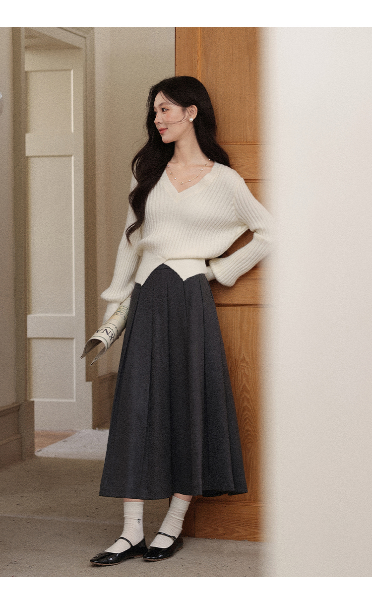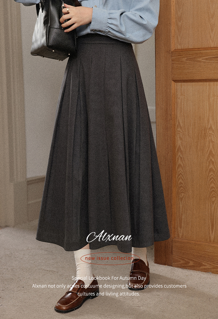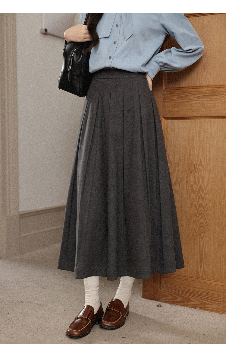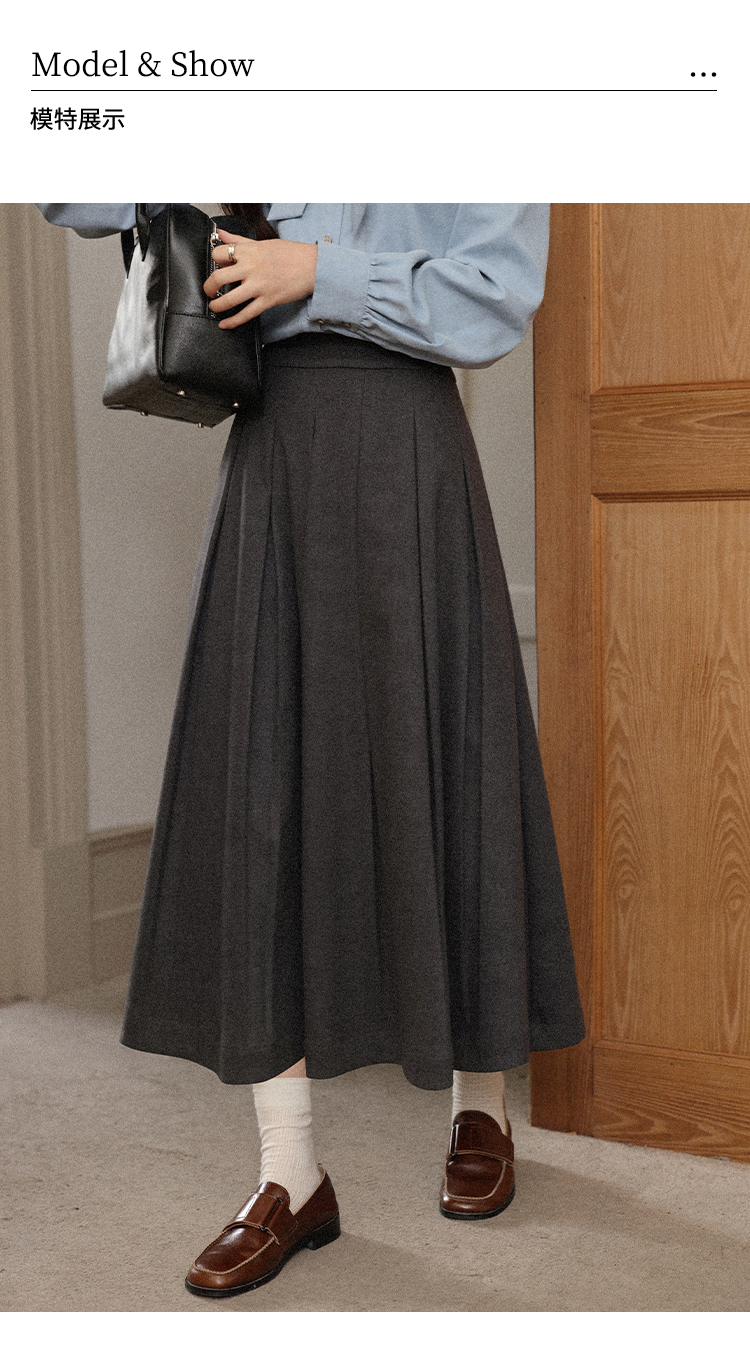 鹿向南「枫阶叠露」灰色百褶学院风休闲半身裙秋季新款宽松长裙女