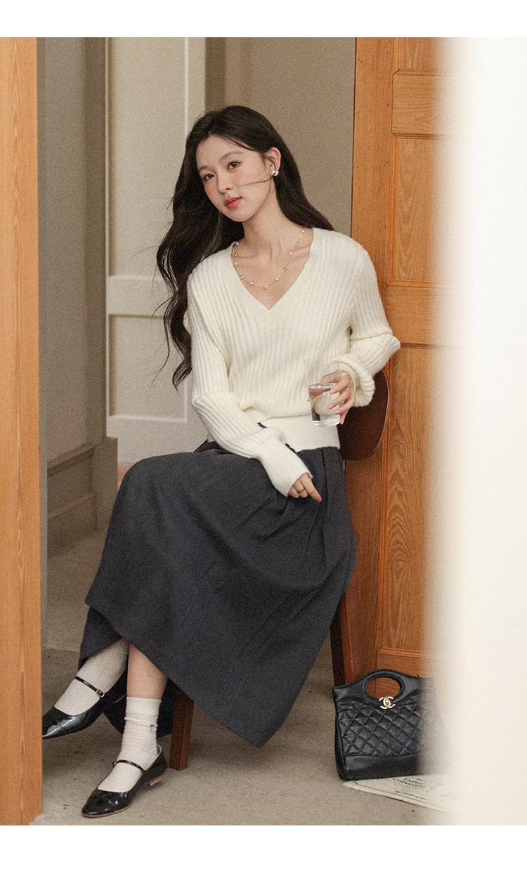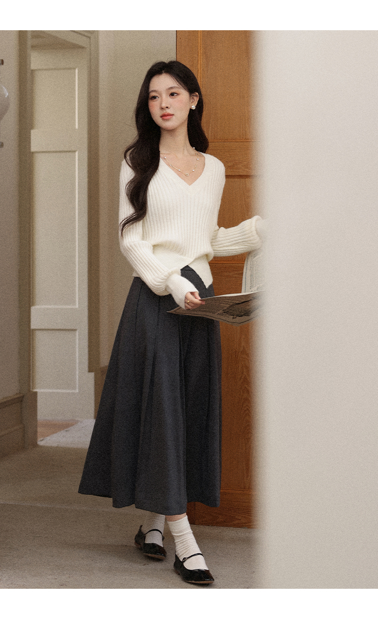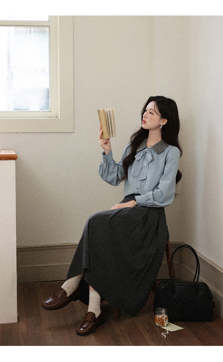 鹿向南「枫阶叠露」灰色百褶学院风休闲半身裙秋季新款宽松长裙女