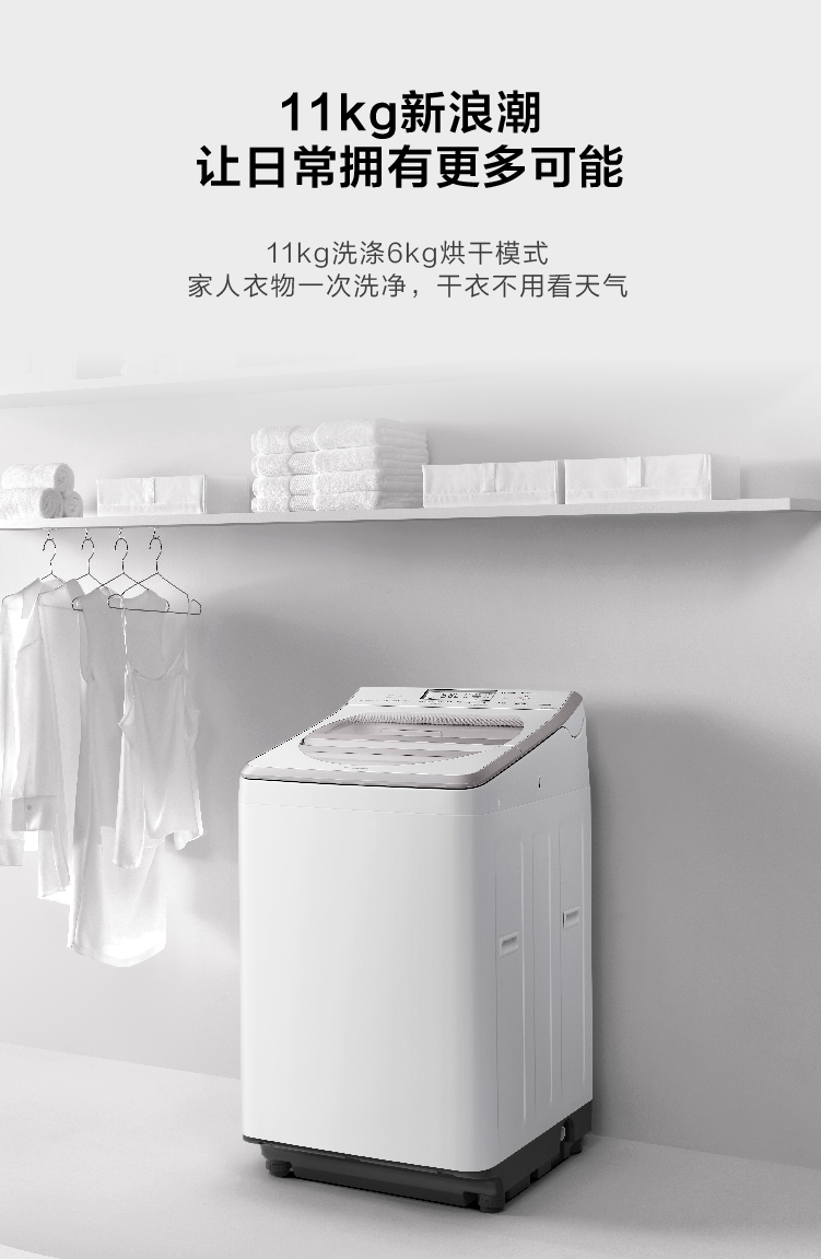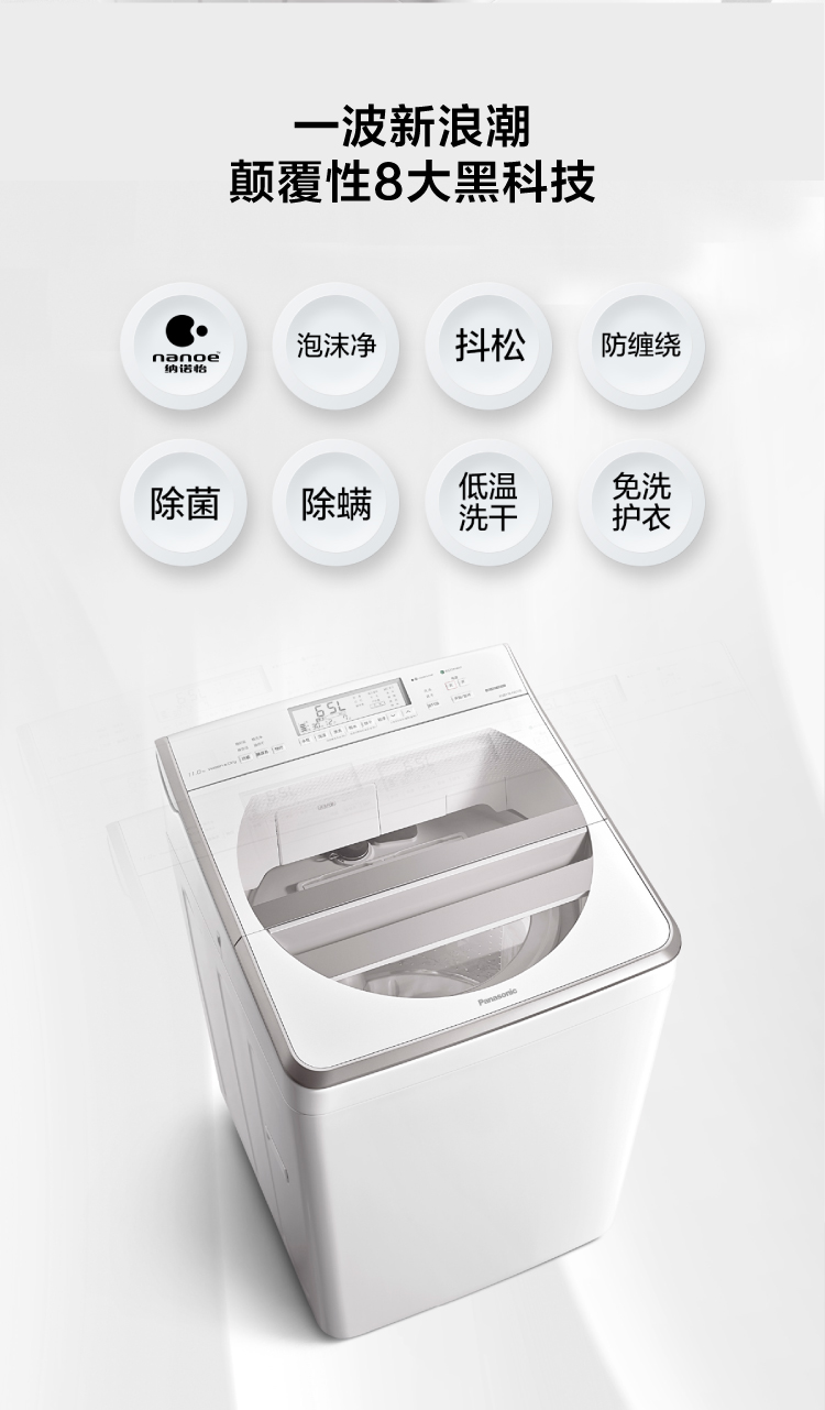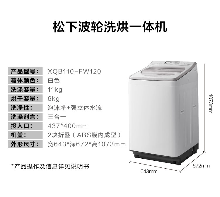 松下(Panasonic) 洗烘一体波轮全自动11kg 纳诺怡免洗护衣 桶洗净 大容量烘干泡沫净 白色XQB110-FW120