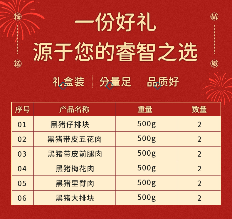 诺顿逸品 喜气洋洋精选黑猪肉组合6000g