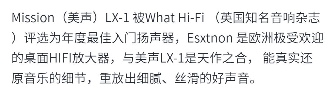 天作之合 英国Mission LX-1音箱+Esxtnon功放人声监听HIFI入门套装