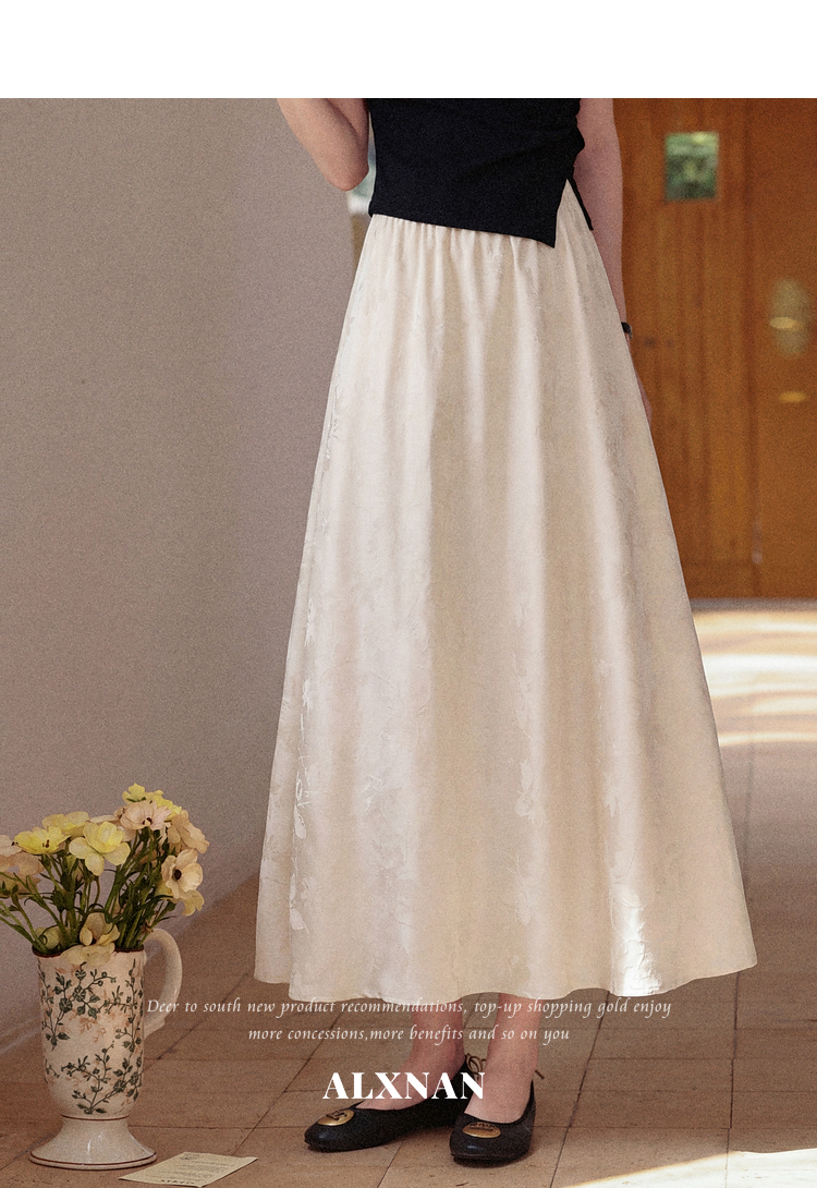 鹿向南「诗韵婉兮」杏色半身裙女夏季新款气质垂感国风显瘦A字裙