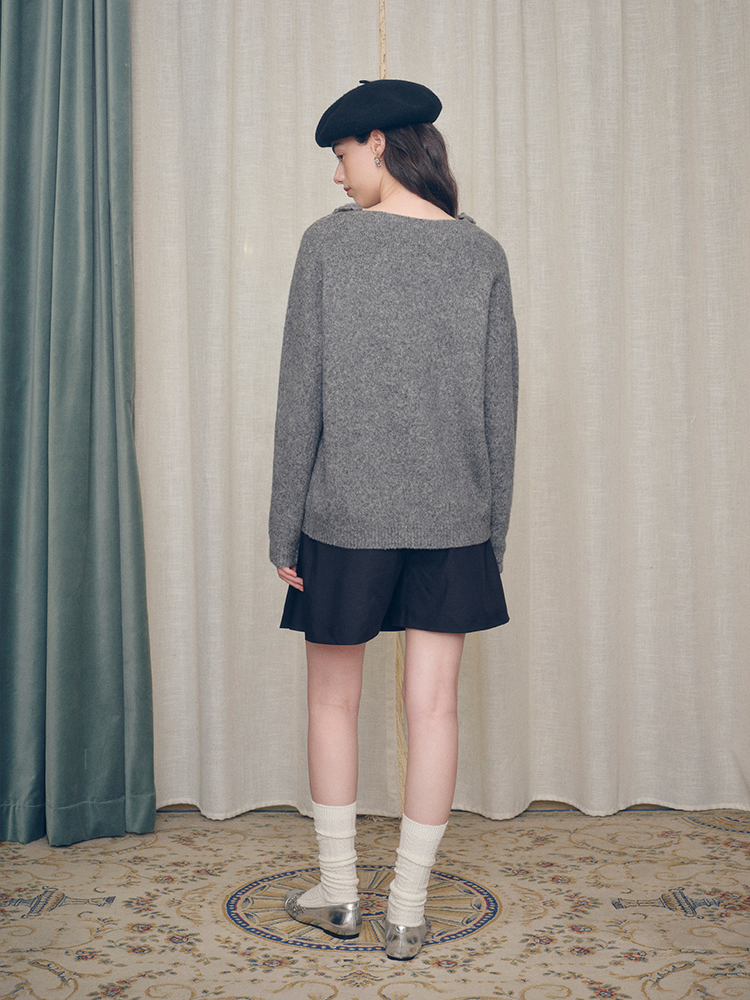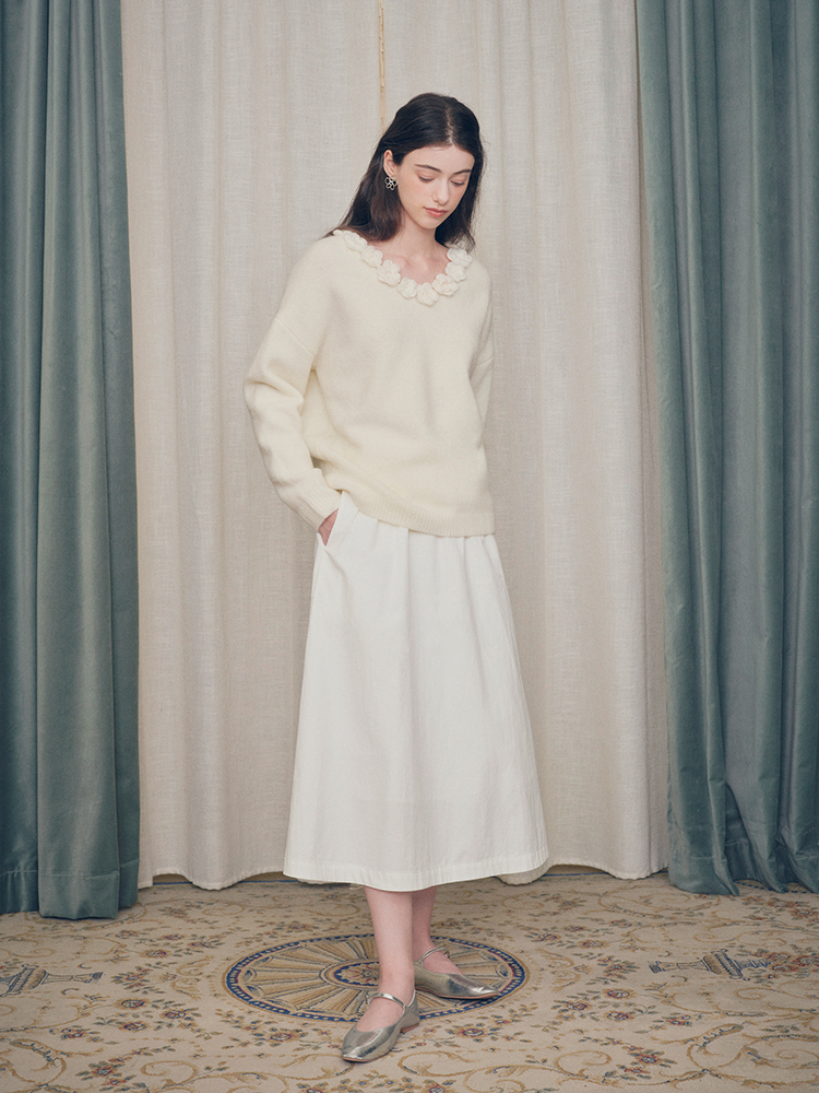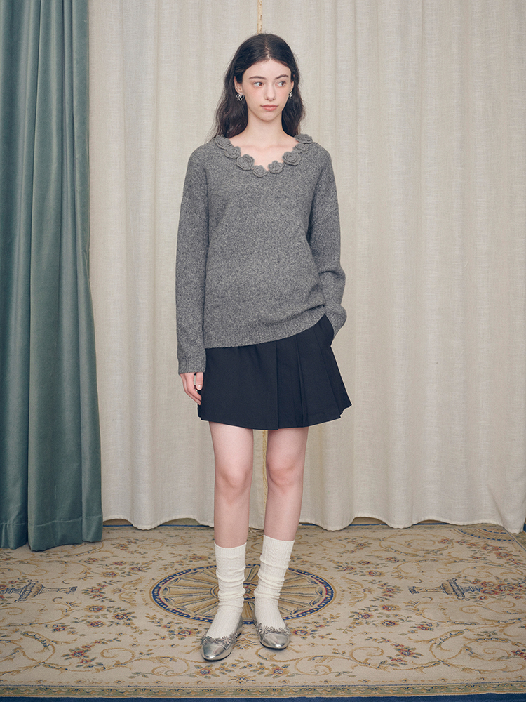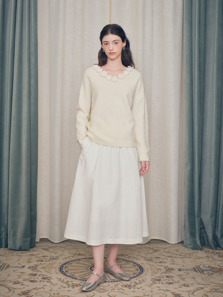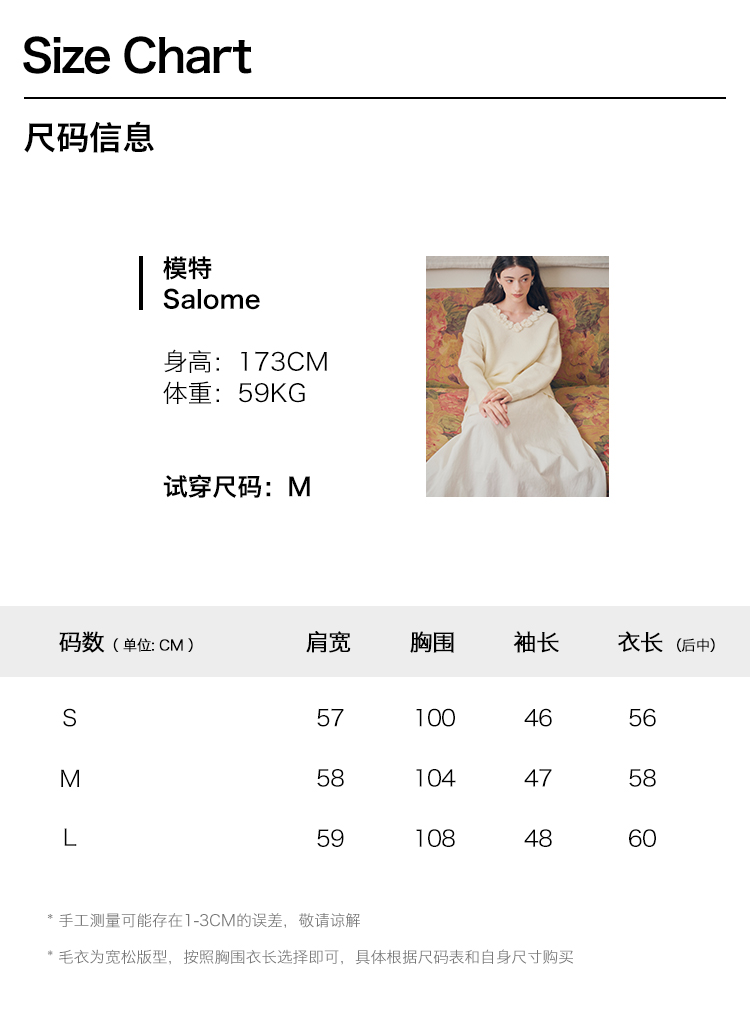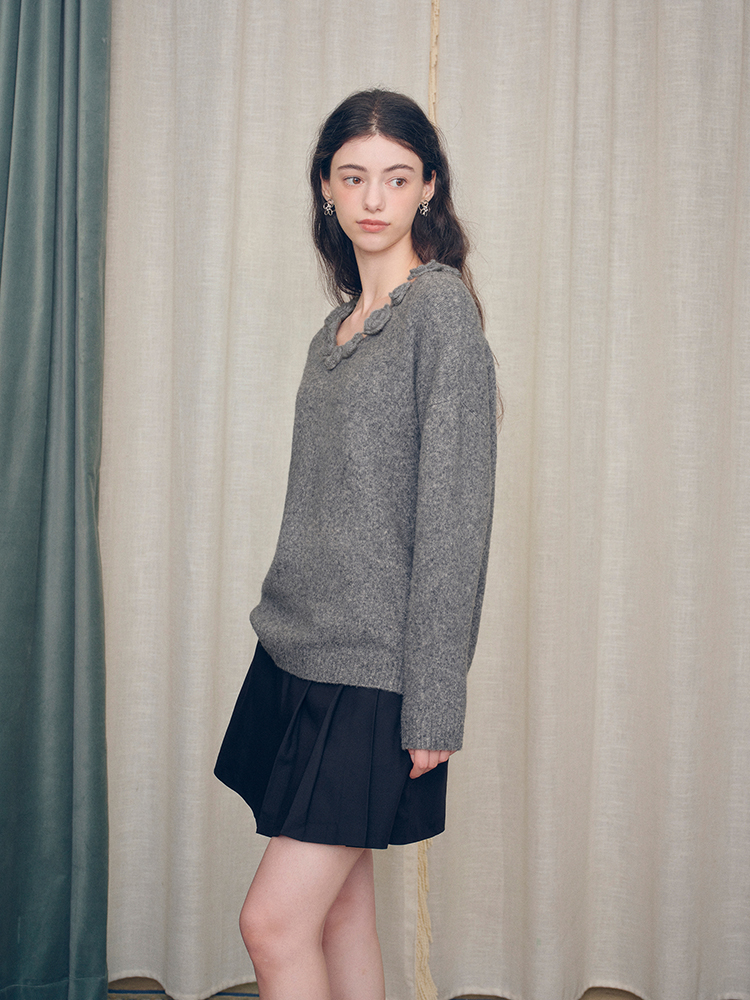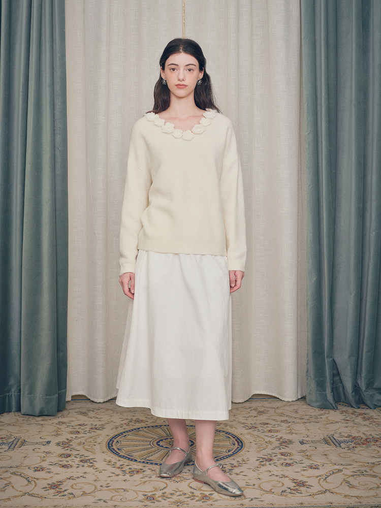 ForPoem 现货 24/FW原创设计手工钩针花朵V领驼马绒宽松毛衣