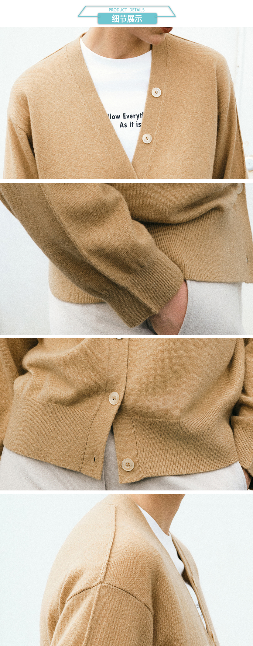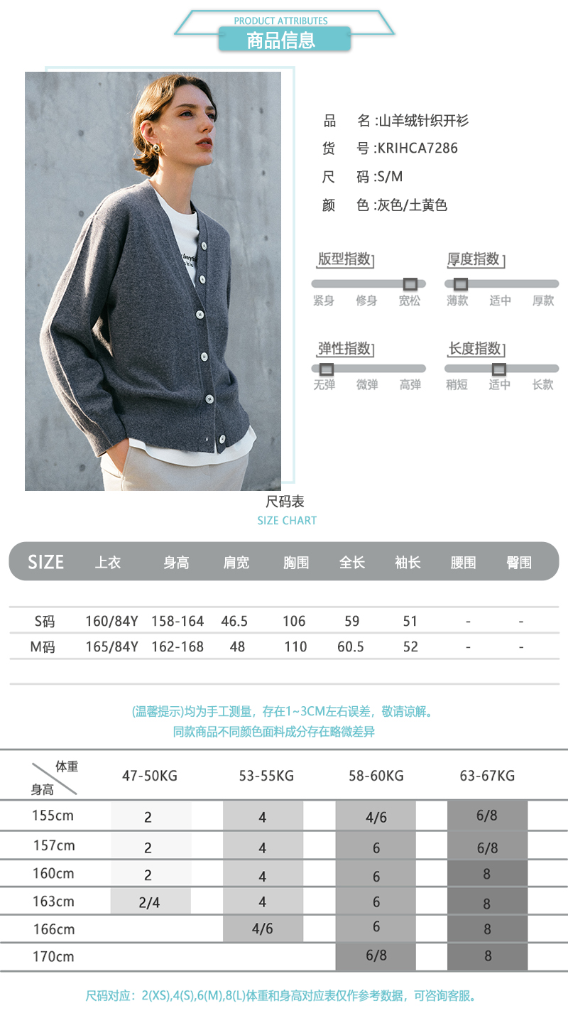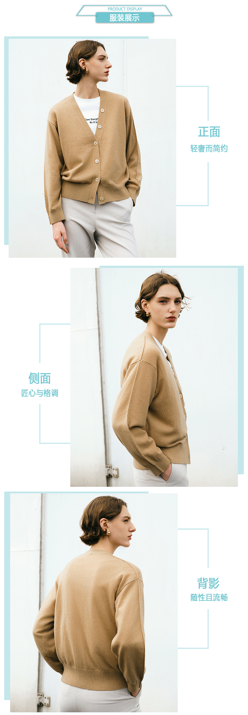 ICB日系春季通勤宽松纯山羊绒V领针织毛衣开衫编织羊绒衫商场同款