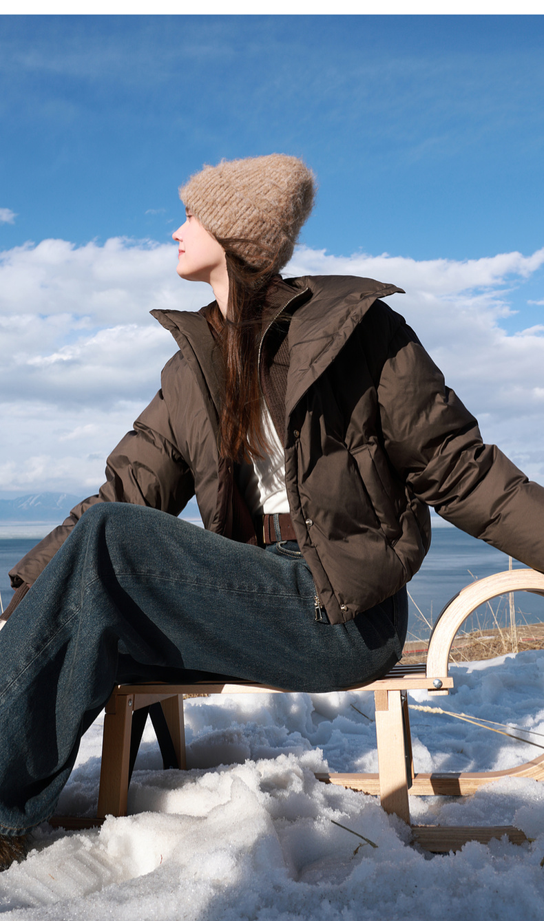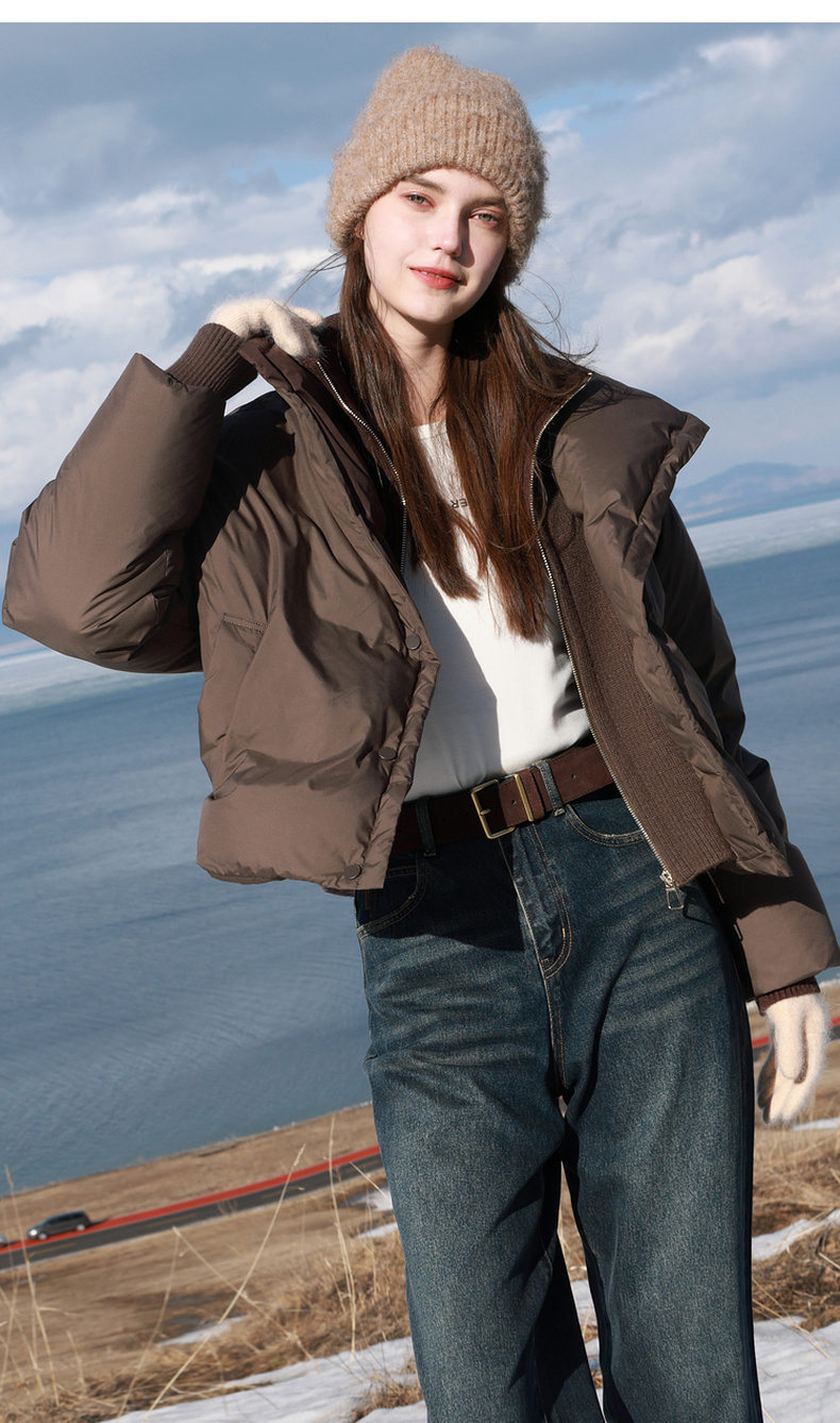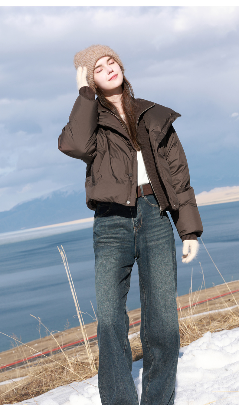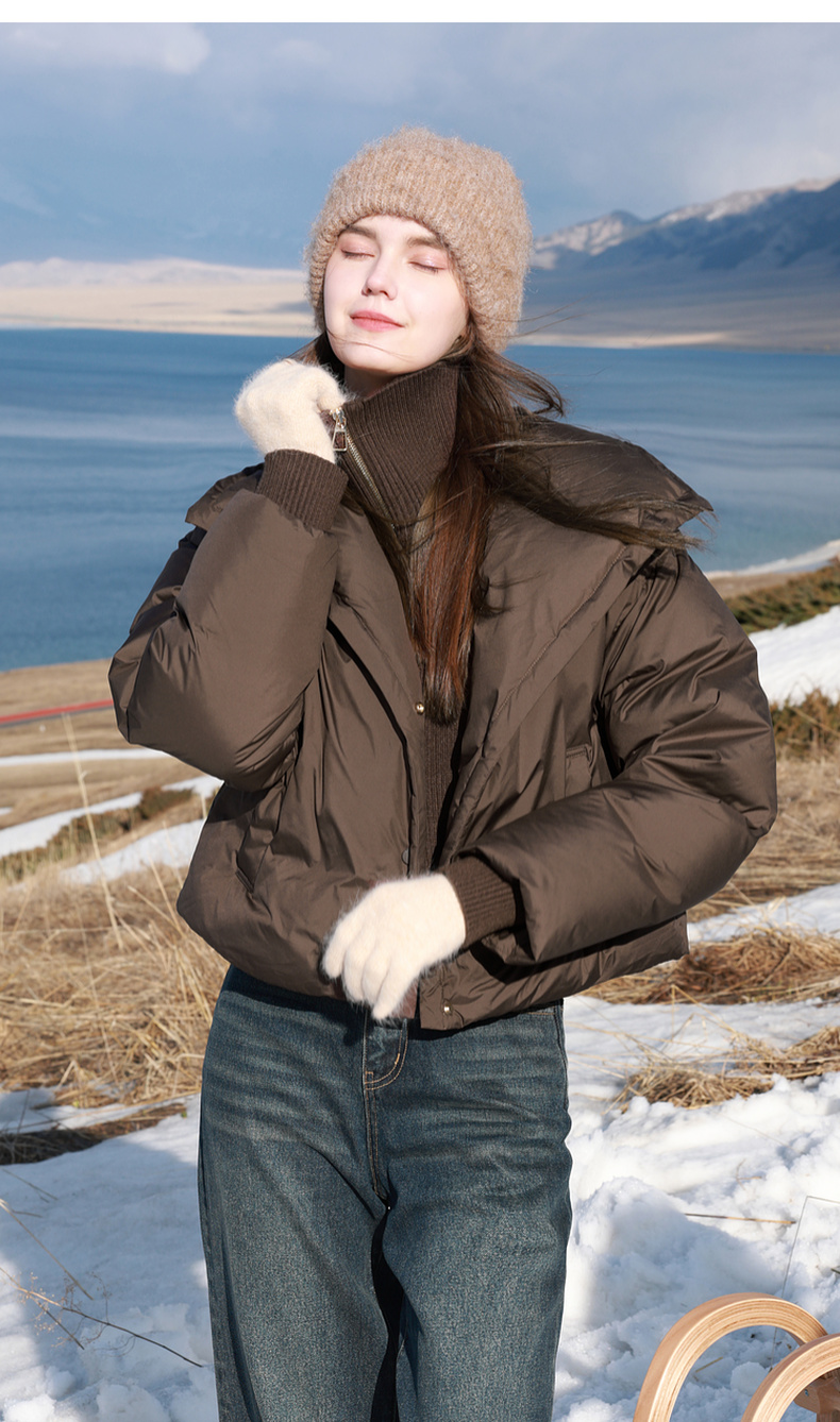 三彩2025冬季新款90白鸭绒羽绒服宽松假两件面包服短款保暖M