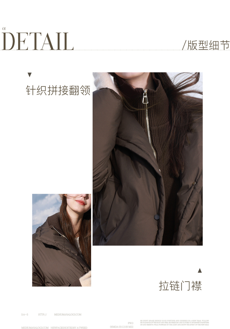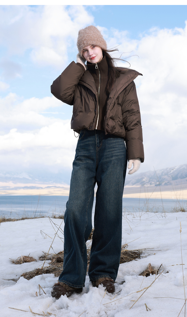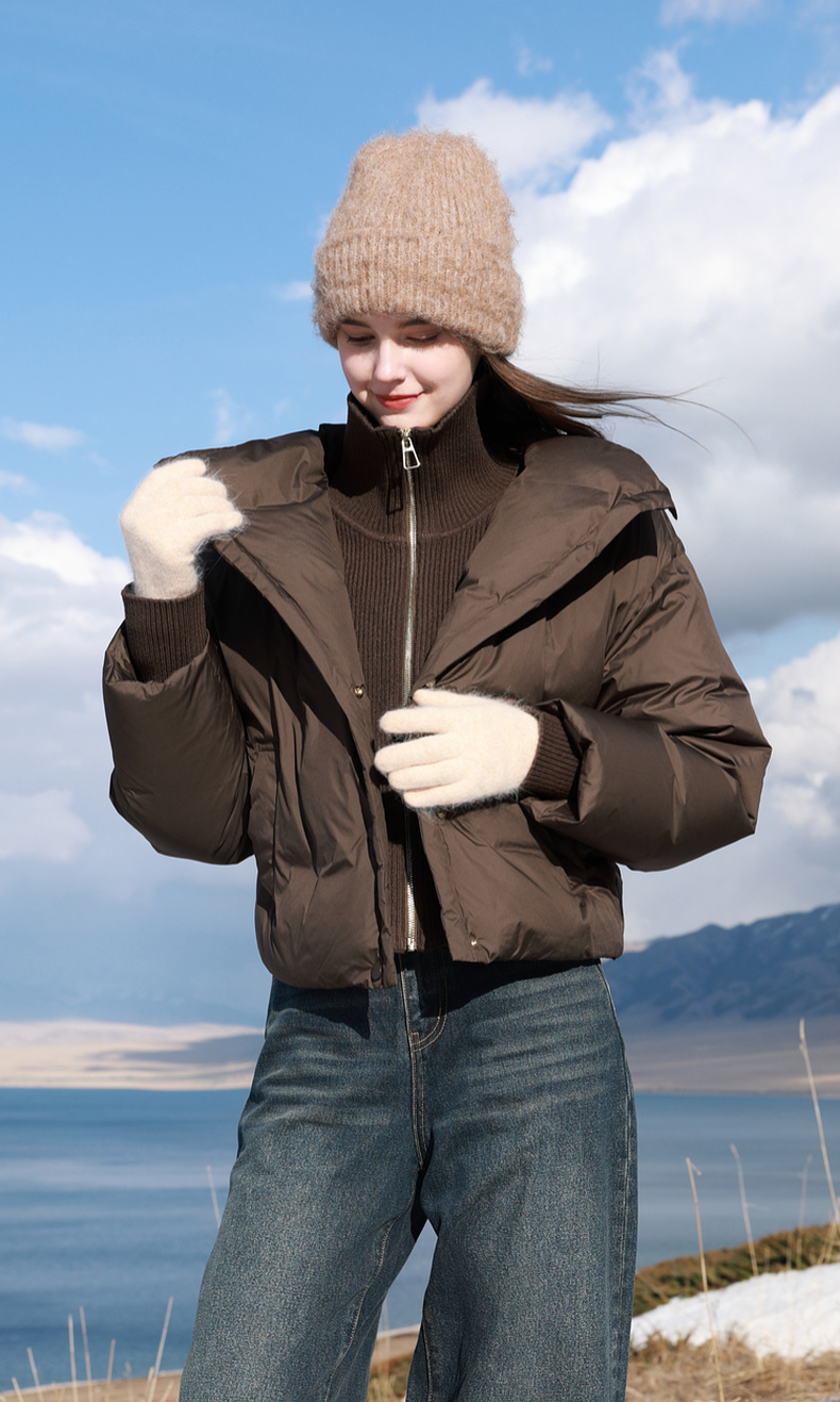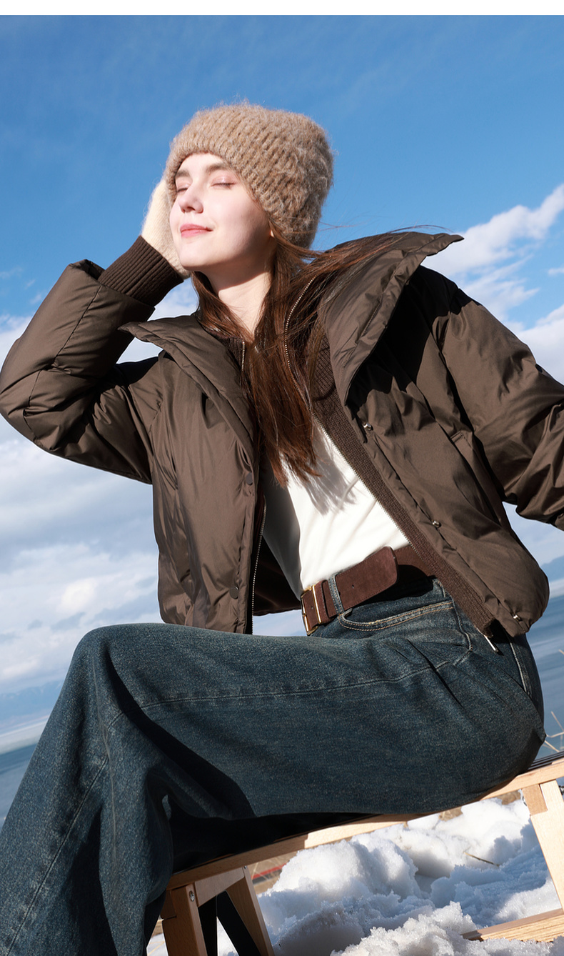 三彩2025冬季新款90白鸭绒羽绒服宽松假两件面包服短款保暖M