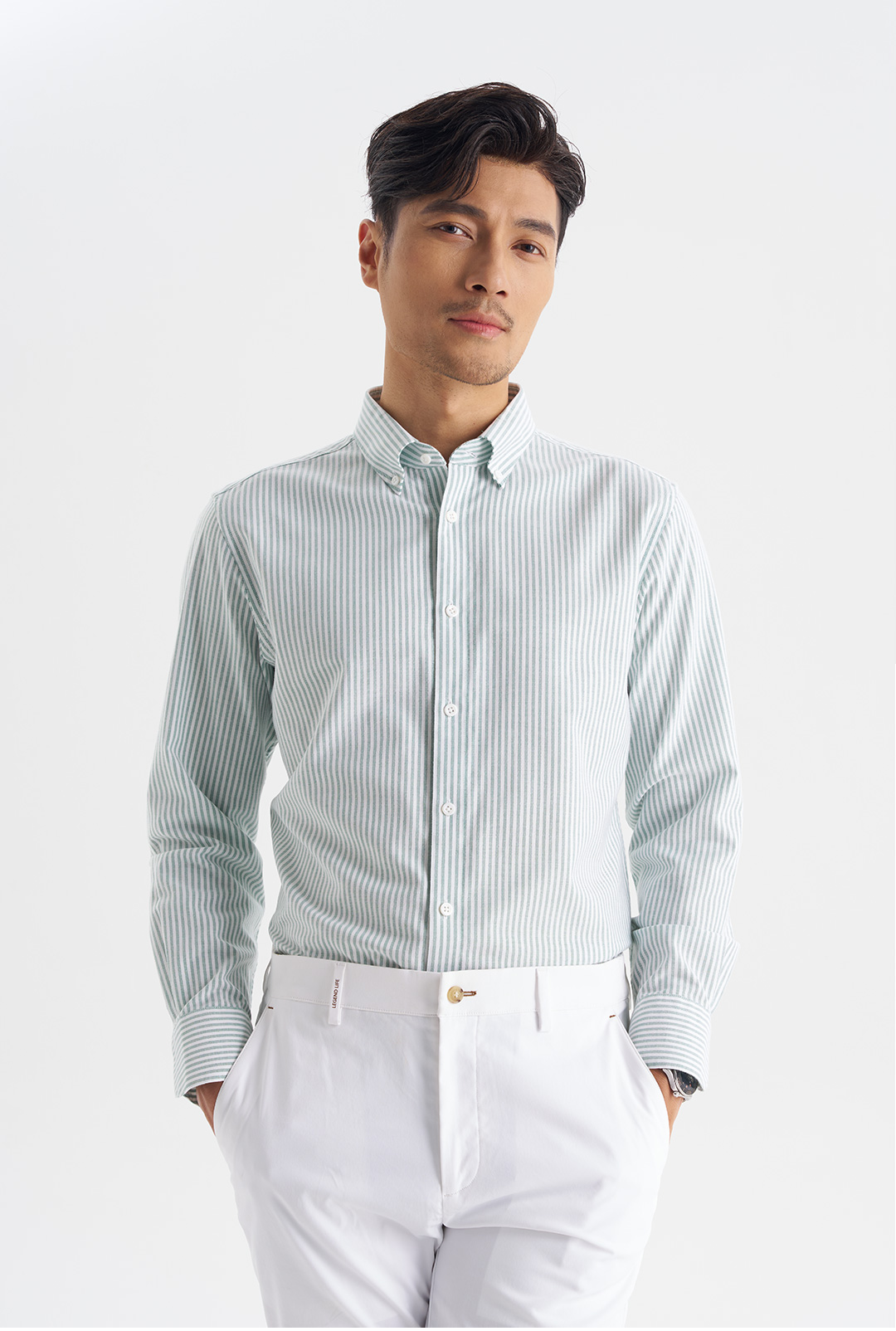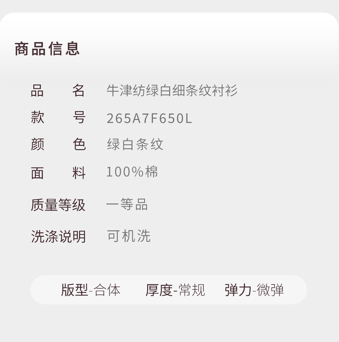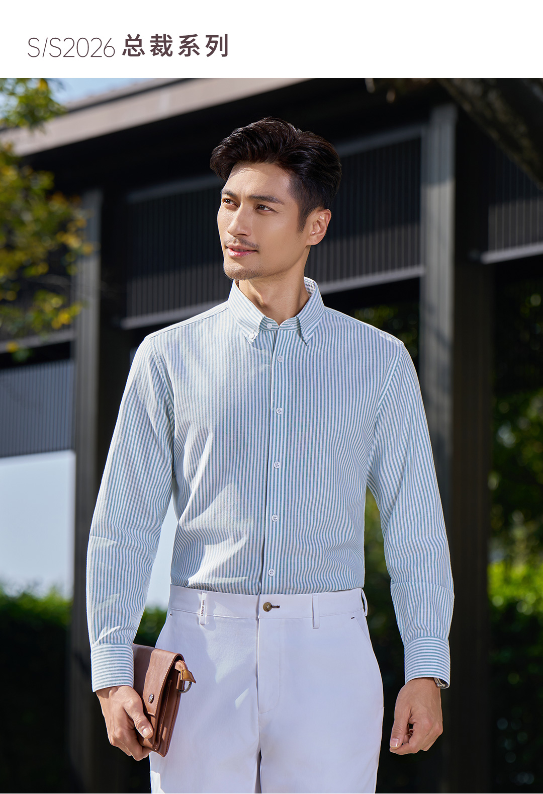 【总裁27】牛津纺绿白细条纹衬衫265A7F650L【门店同款】