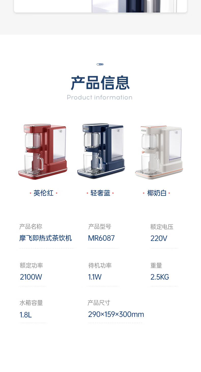 摩飞电器(Morphyrichards)即热式茶饮 泡茶 煮茶器 家用办公室养生壶 多功能烧水 一体饮水 MR6087