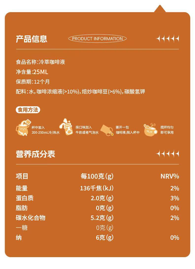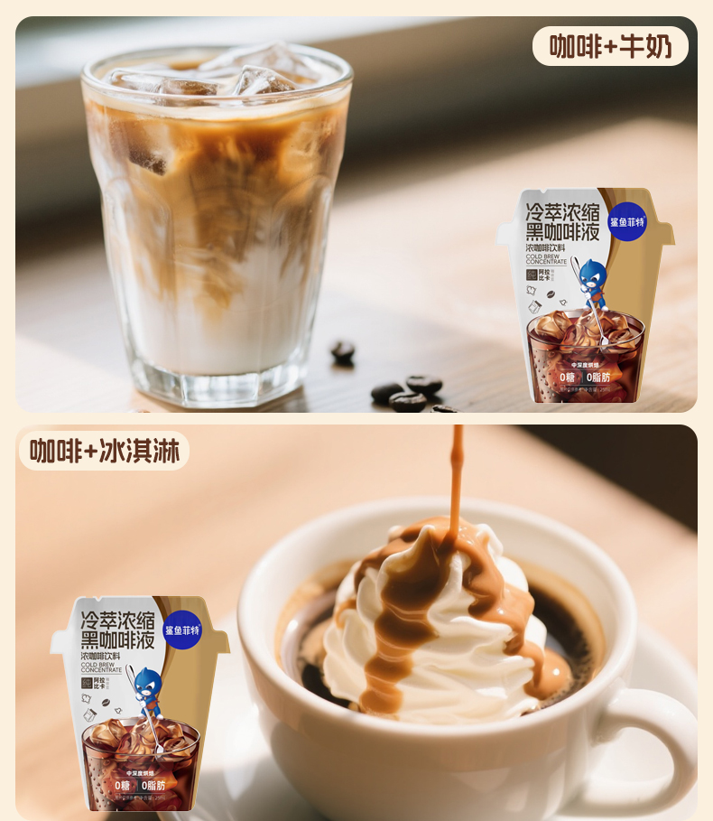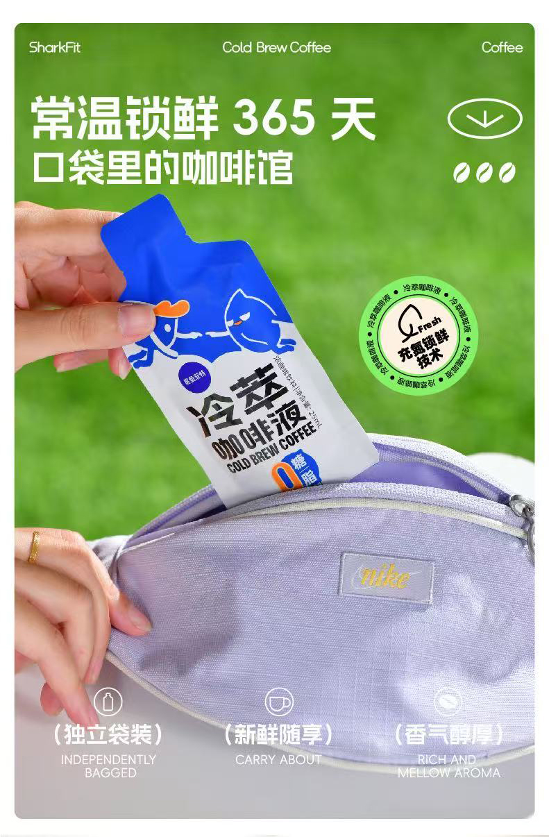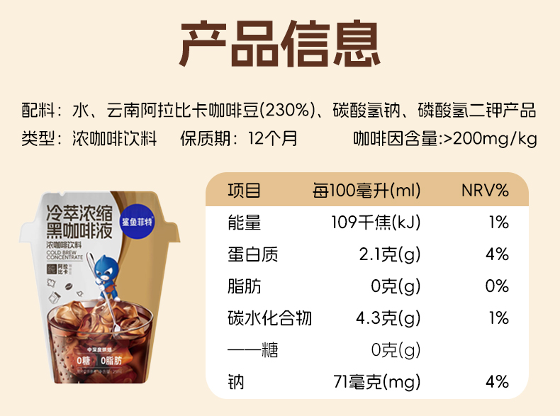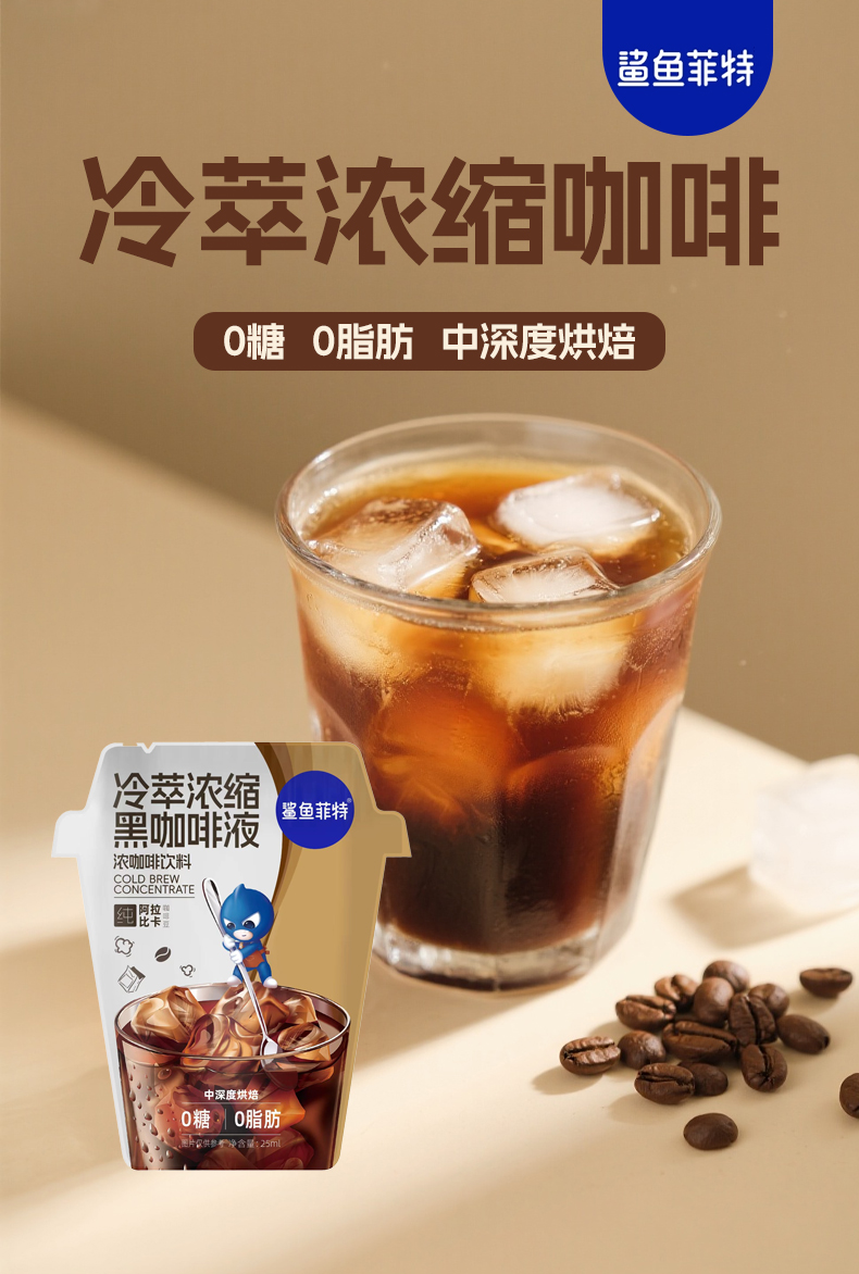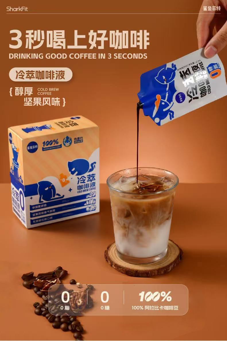 【鲨鱼菲特300-200】冷萃咖啡液25ml速溶0糖0脂健身代餐黑美式咖啡便携下午茶