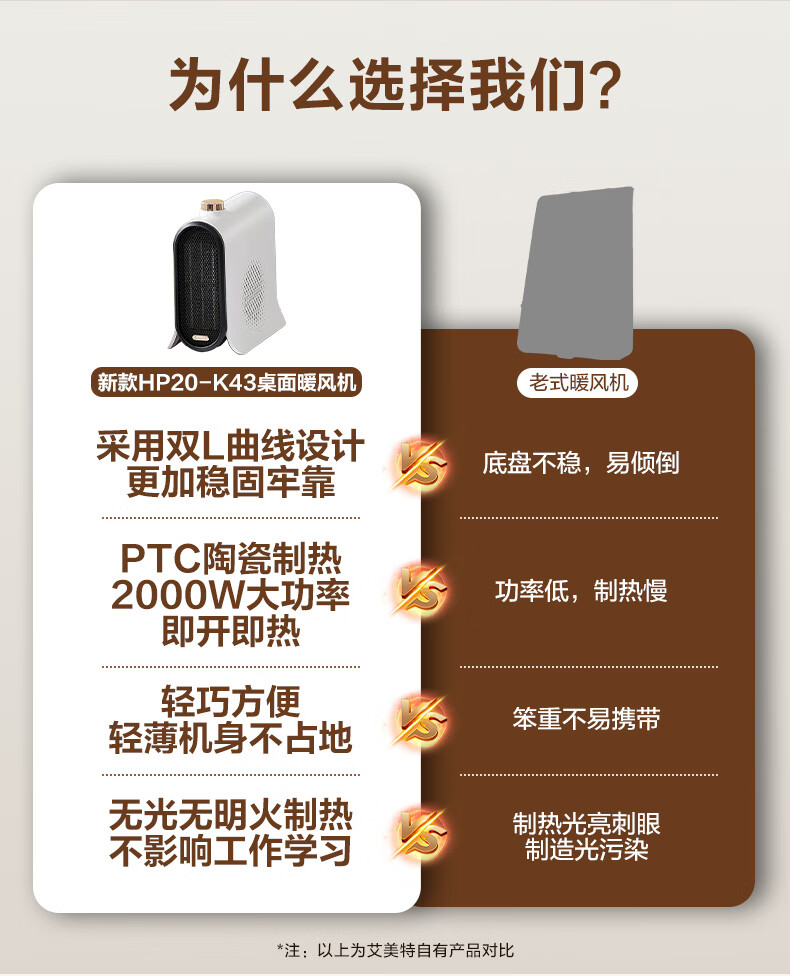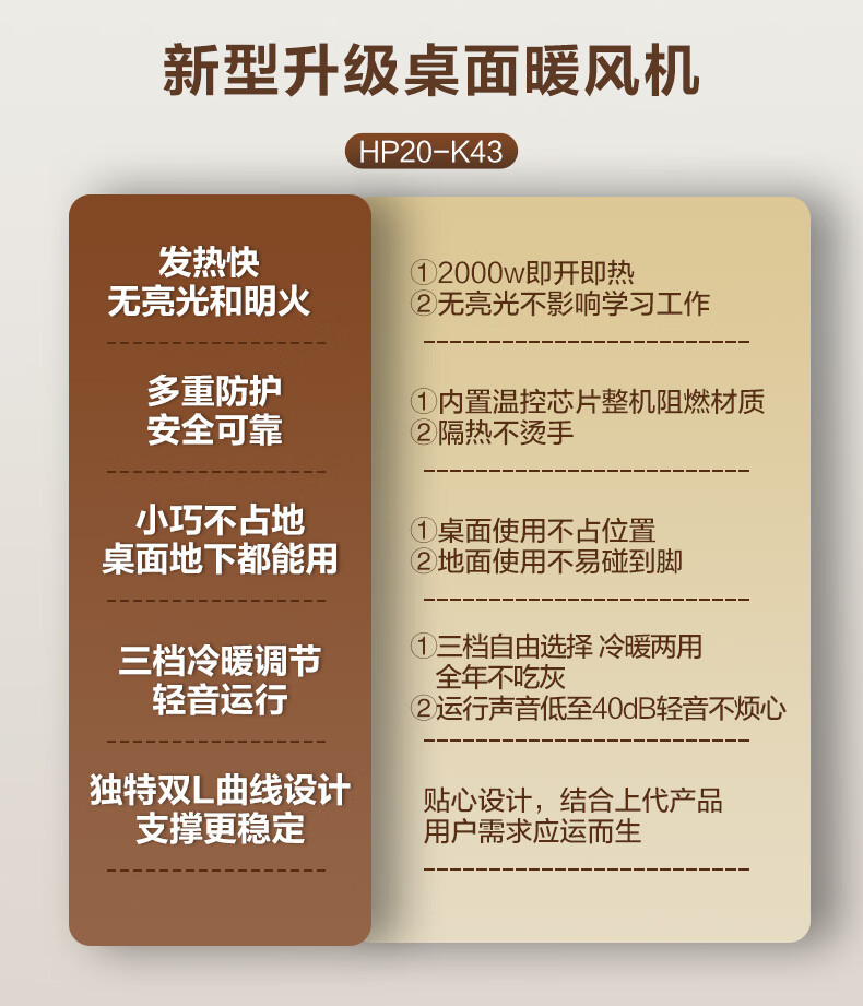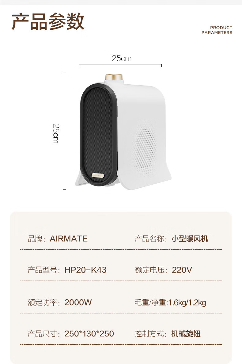 艾美特(AIRMATE)桌面暖风机 HP20-K43